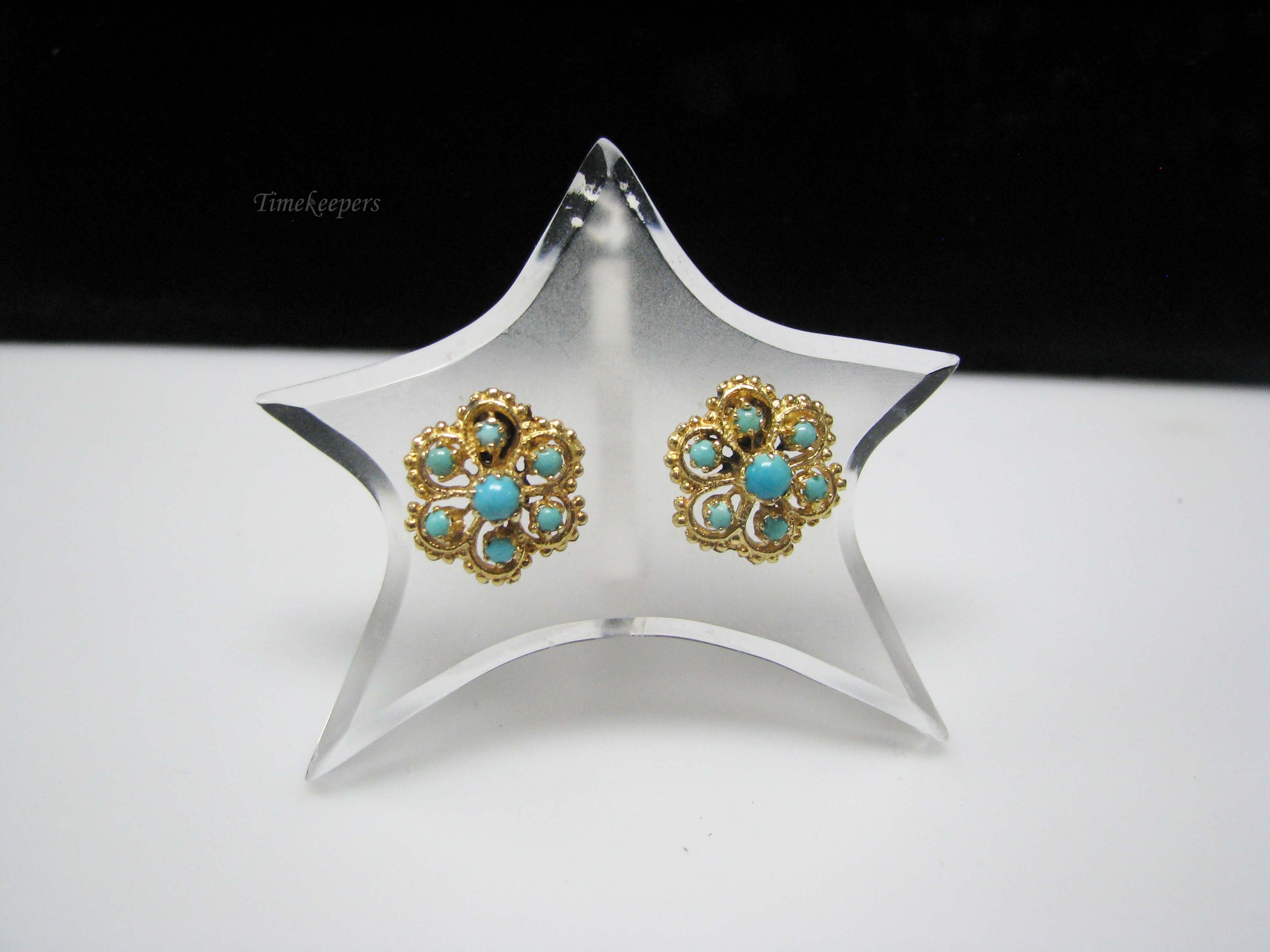 b496 Antique 14kt Yellow Gold Turquoise Earrings