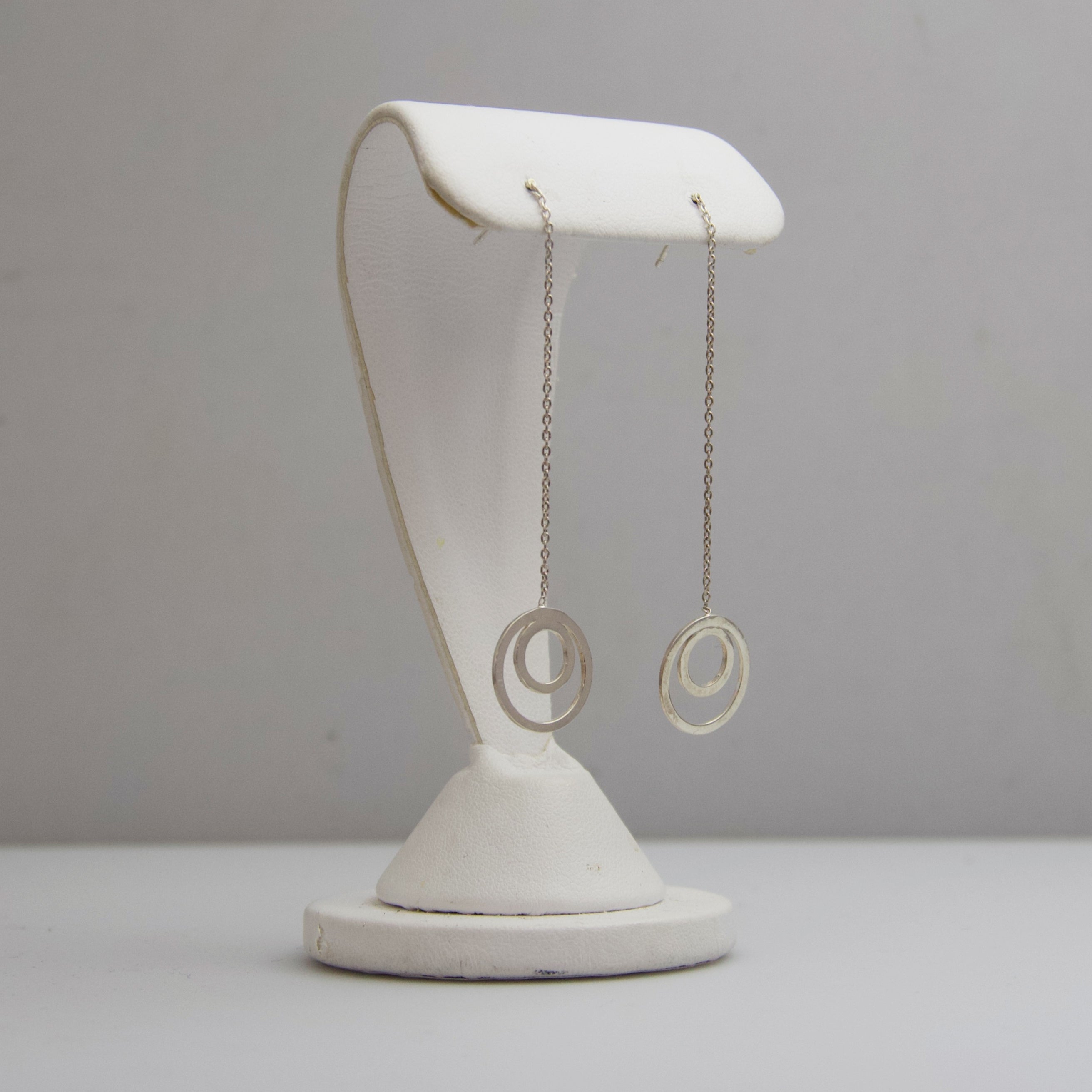 j416 Pretty Sterling Silver Dangle Earrings with Black Enamel Design