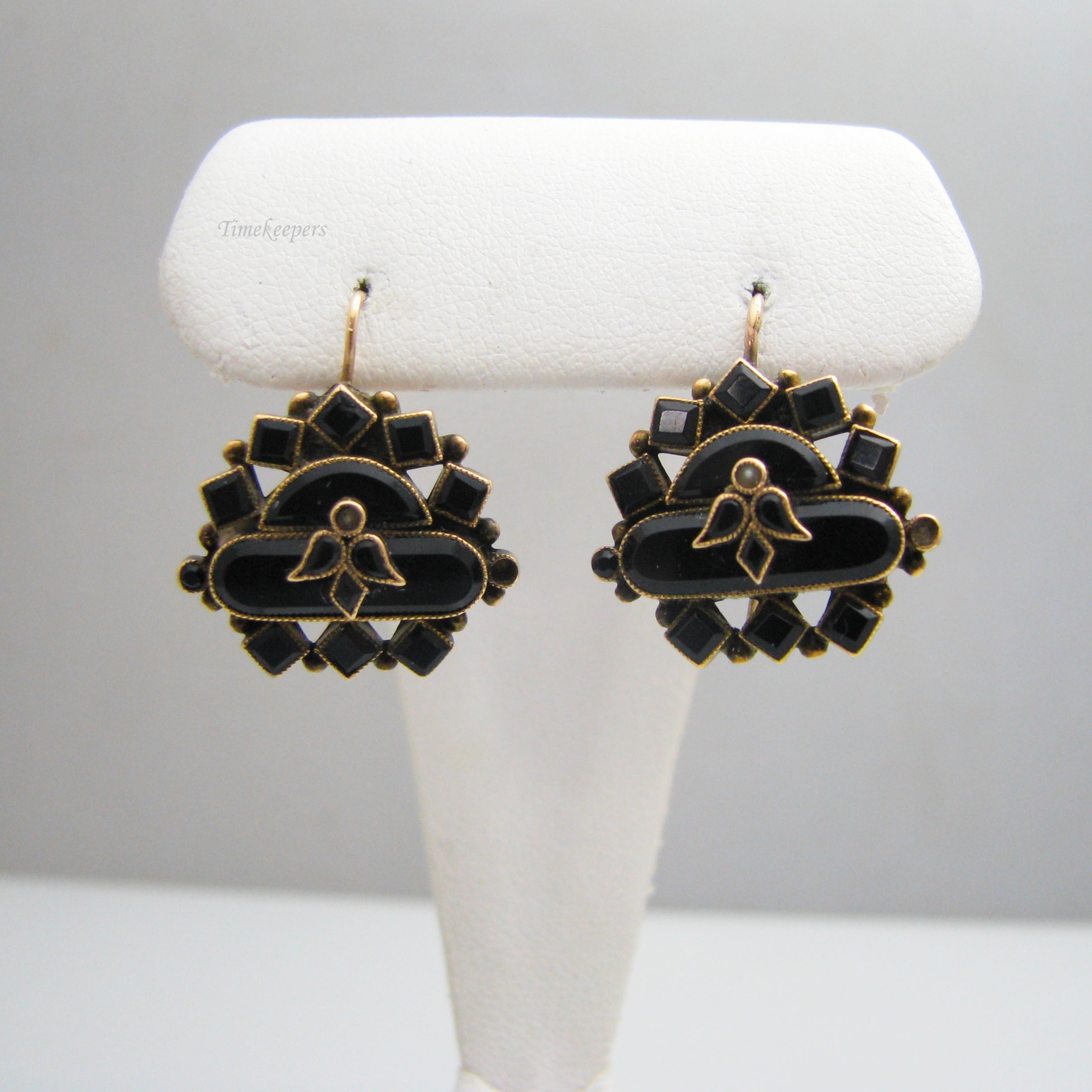 g038 Pretty 14k Yellow Gold Black Onyx Earrings