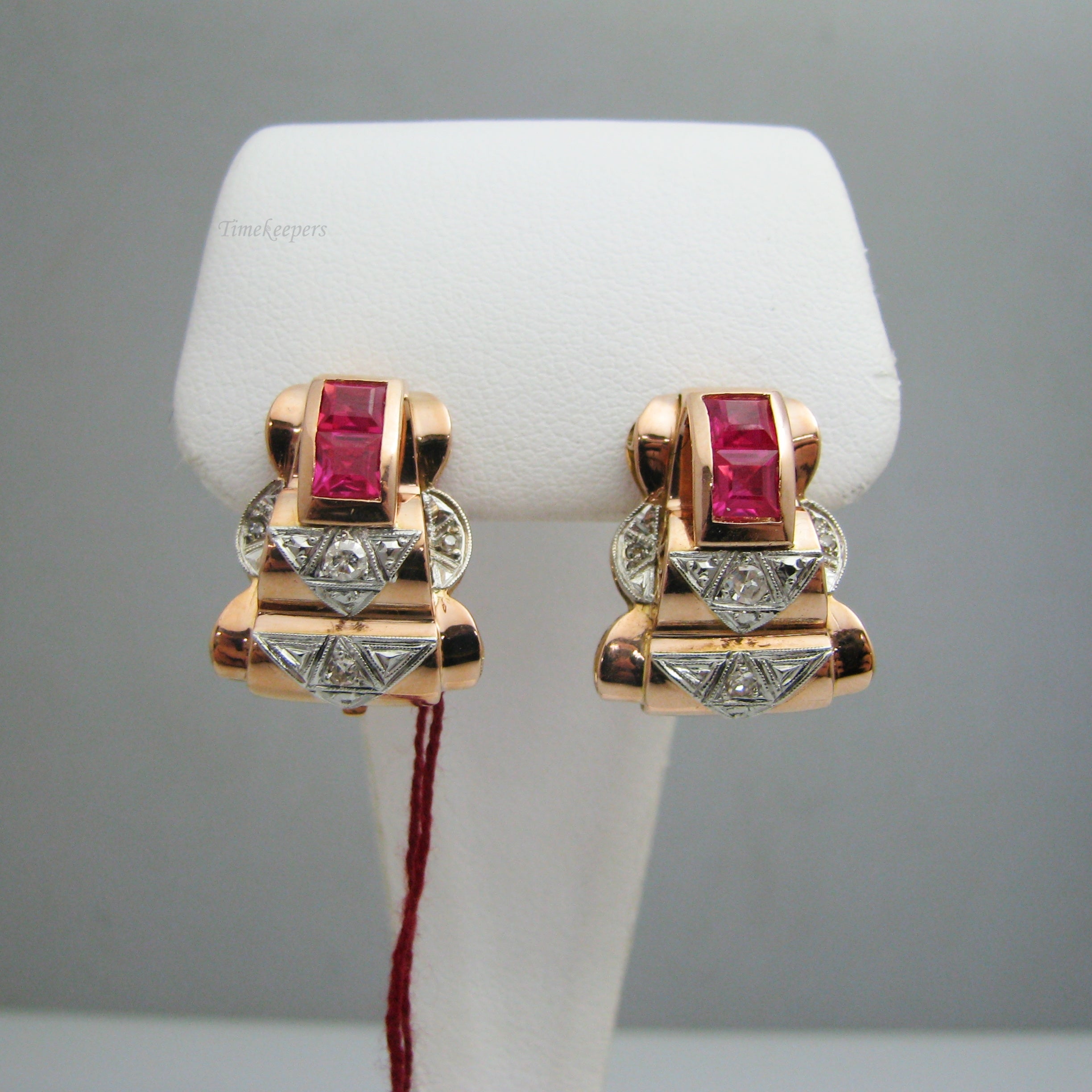 g064 Dazzling 18k Rose Gold Ruby and Diamond Earrings