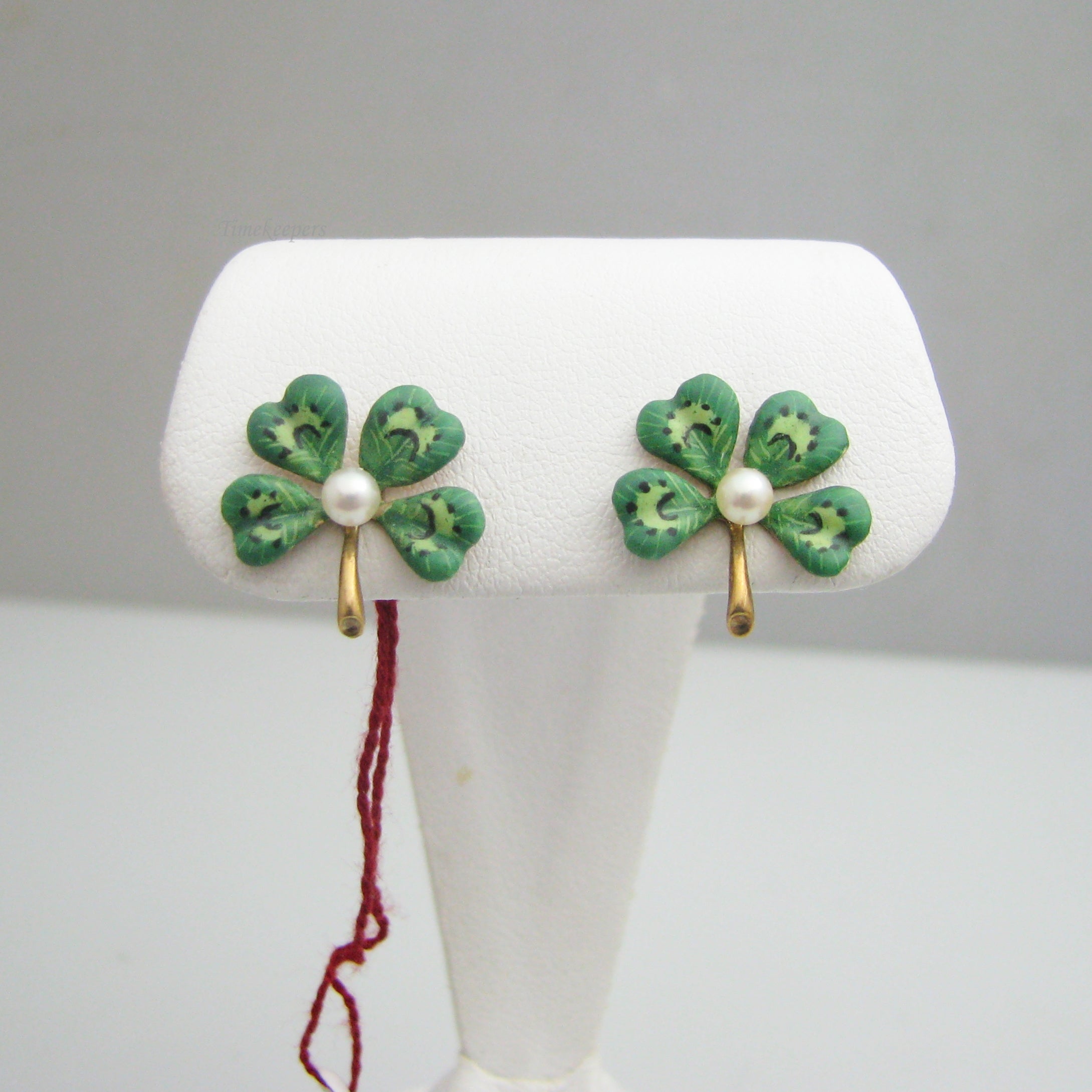 g094 14k Yellow Gold Clover Pearl Diamond Earring & Pin Set