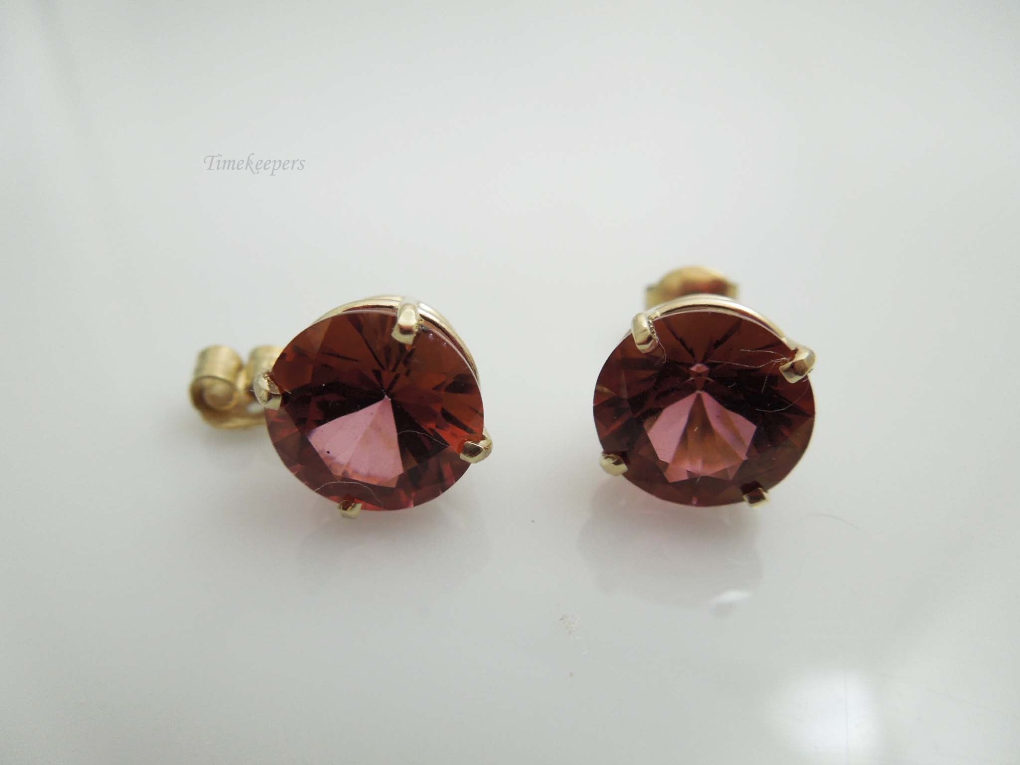 b997 Beautifully Treated Red Topaz Stud Earrings set in 14kt Yellow Gold posts