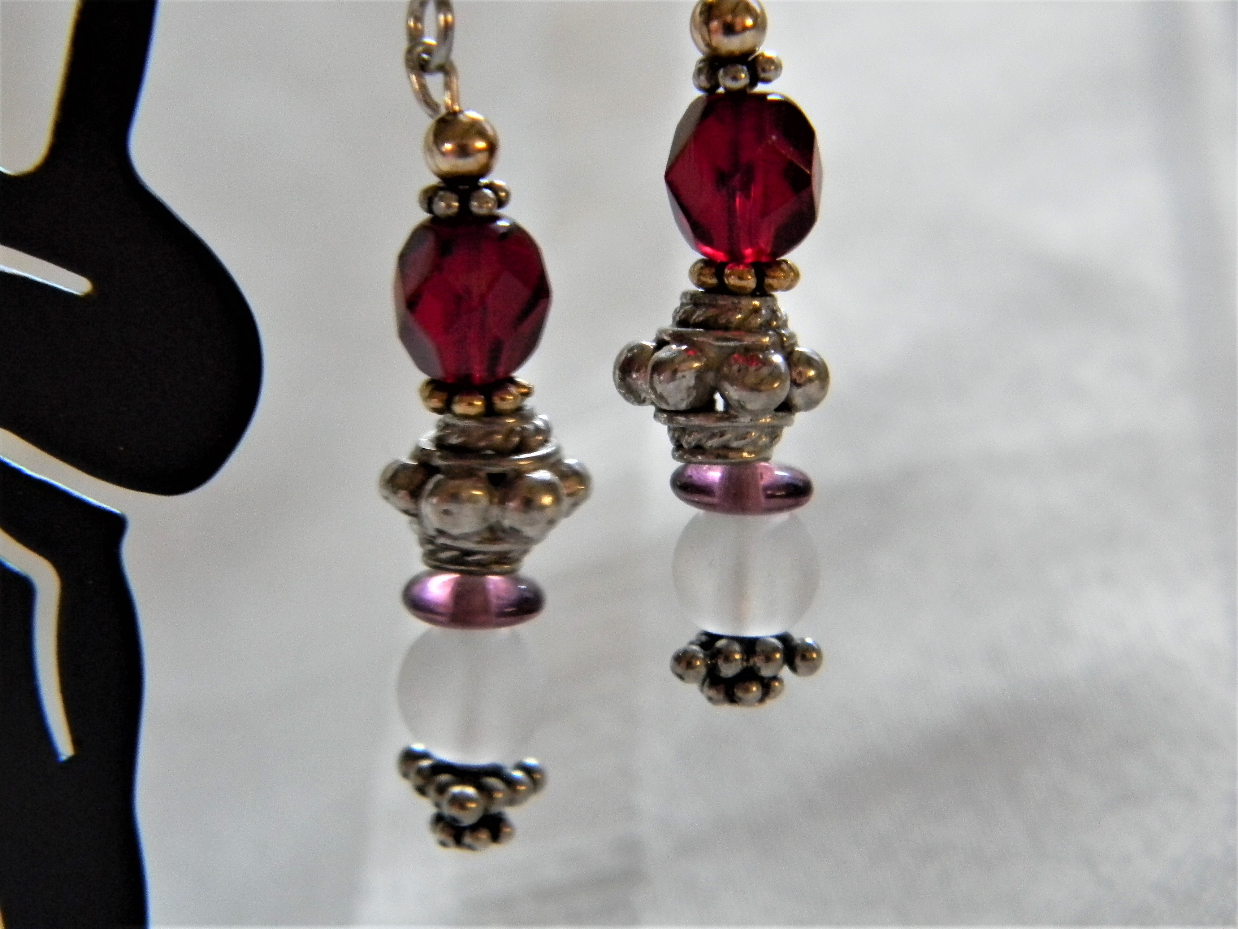 h490 Stunning Sterling Silver Dangle Beaded Earrings with Three Stones