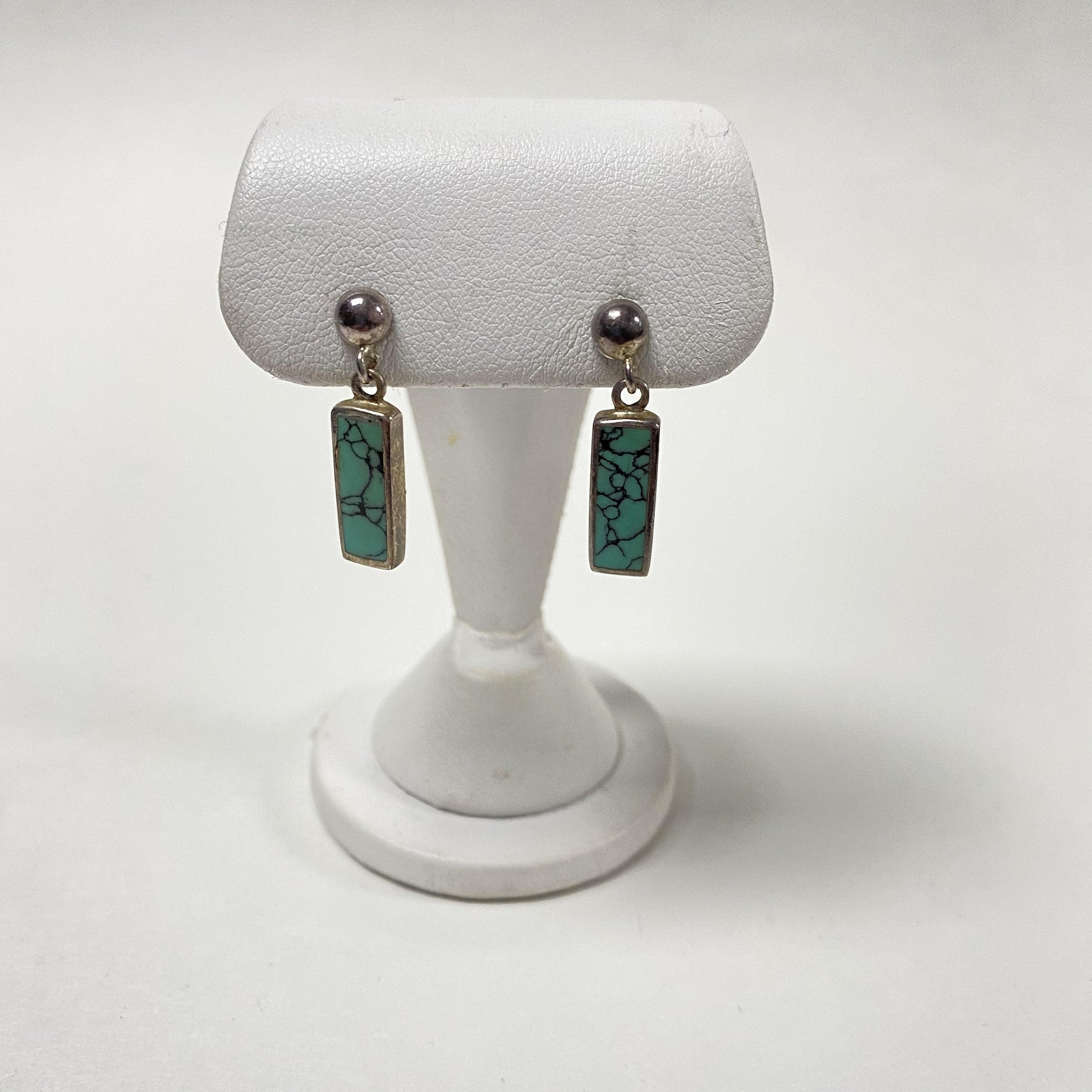 f522 Vintage Sterling Silver Blue Turquoise Dangle Earrings
