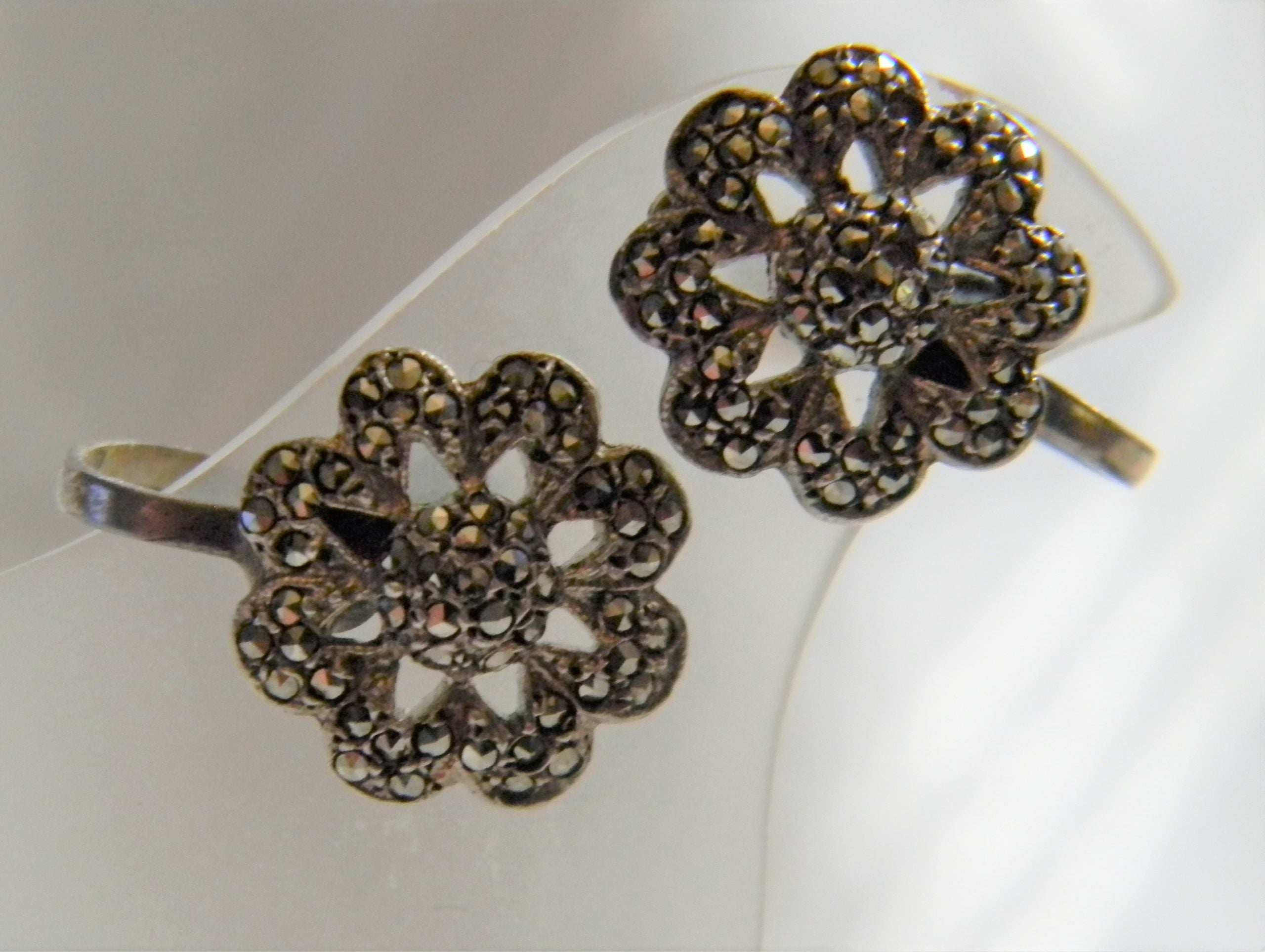 h845 Stunning Sterling Silver Earrings with Marcasite Stones (not Pierced)