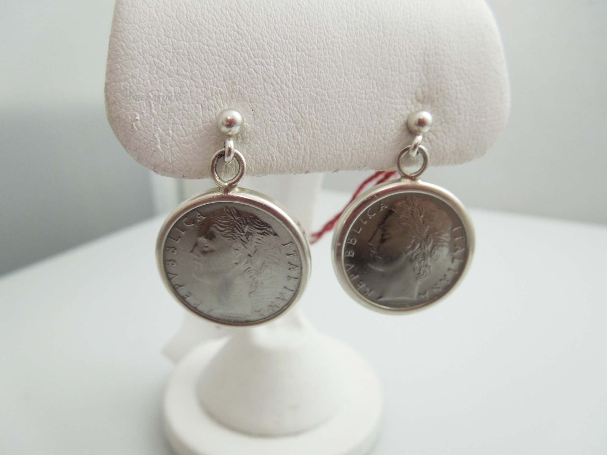 g514 Pair of Sterling Silver Italian Coin Earrings