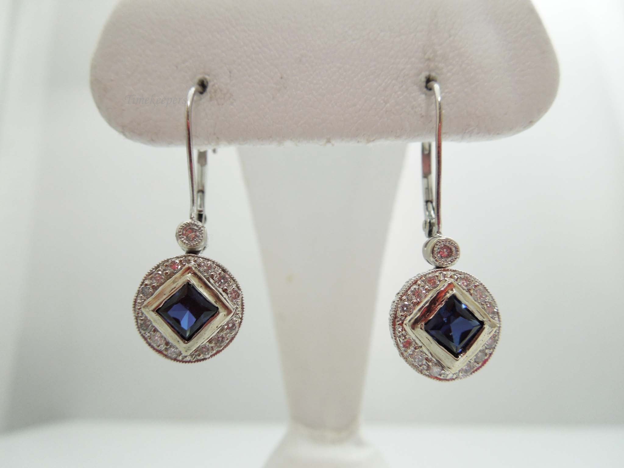 g652 Gorgeous Ladies 18kt White Gold Sapphire and Diamond Dangle Earrings