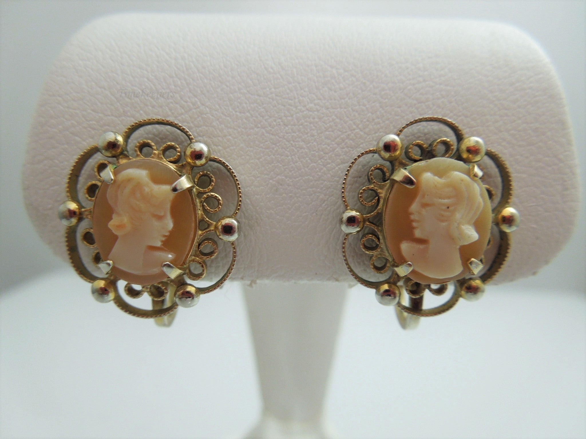 g803 Beautiful Vintage Gold Filled Cameo Clip On Earrings