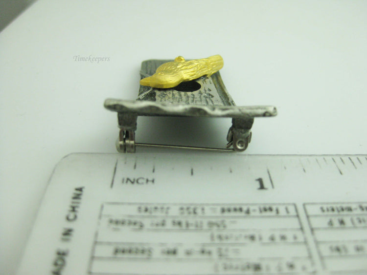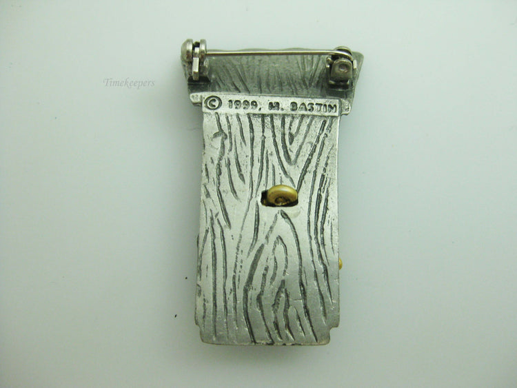 For Sale: b677 Cute Little Gold Tone Bird Perched on a Pewter Birdhouse