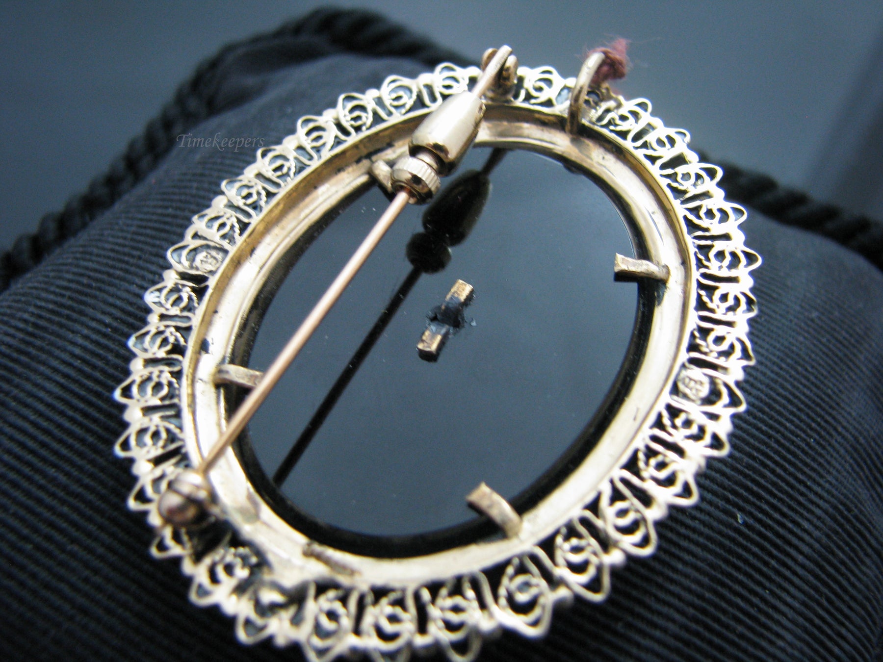 For Sale: (1) b817 Beautiful 14kt Yellow Gold Opal, Onyx and Seed Pearl Brooch Pendant