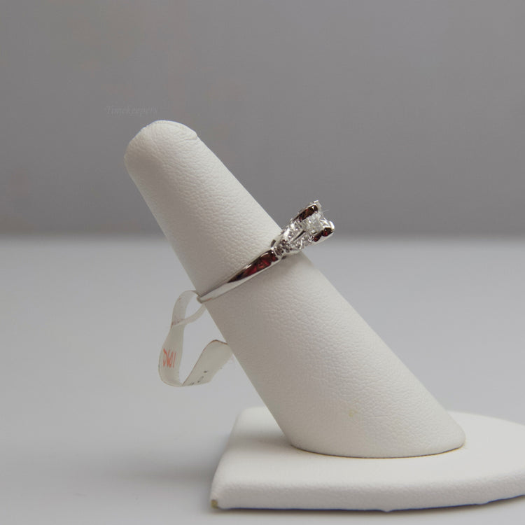 This white gold diamond ring is absolutely gorgeous. It contains eleven (11) diamonds including the centerpiece. This ring is not stamped, but has been tested for authenticity.
