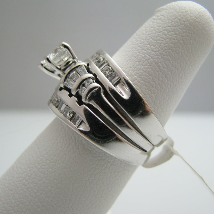 For sale: (1) d857 Stunning 14kt White Gold Heart Shaped Diamond Wedding Ring Set