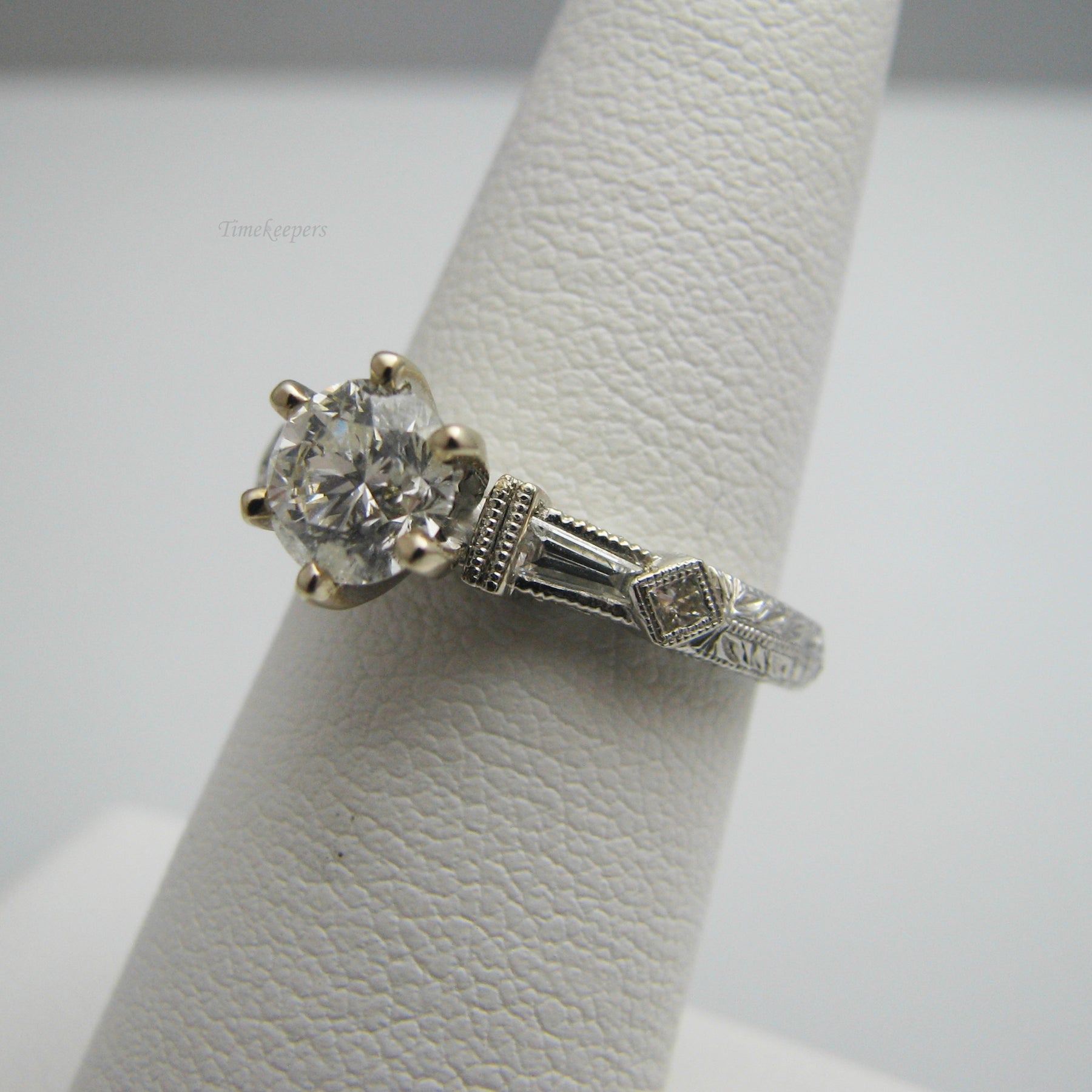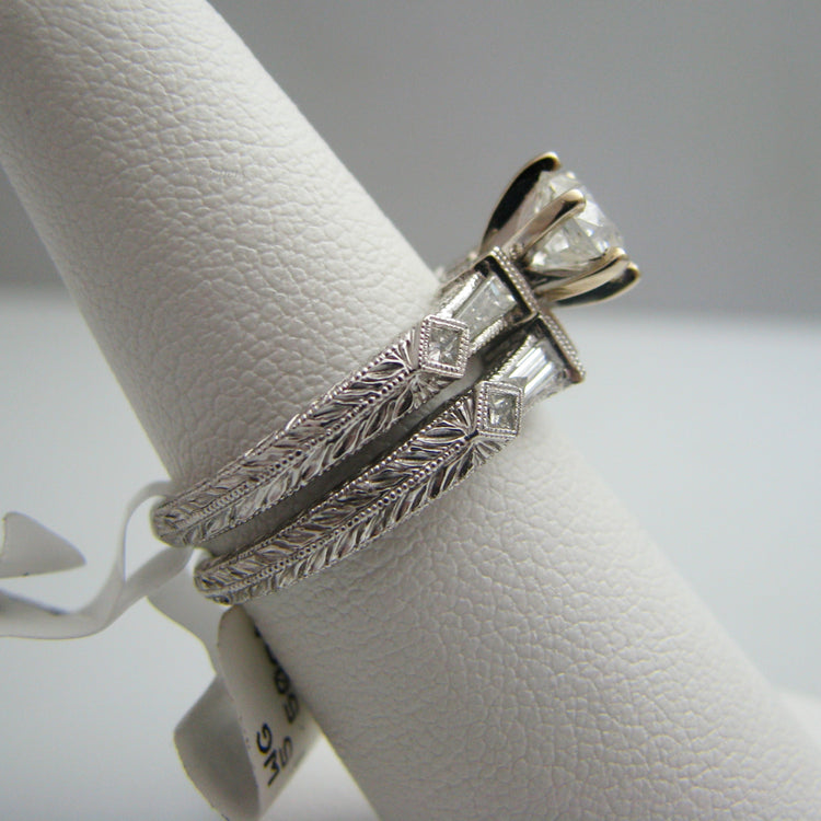 Engagement ring Diamonds: .85cts center round, .21cts baguette & princess cut