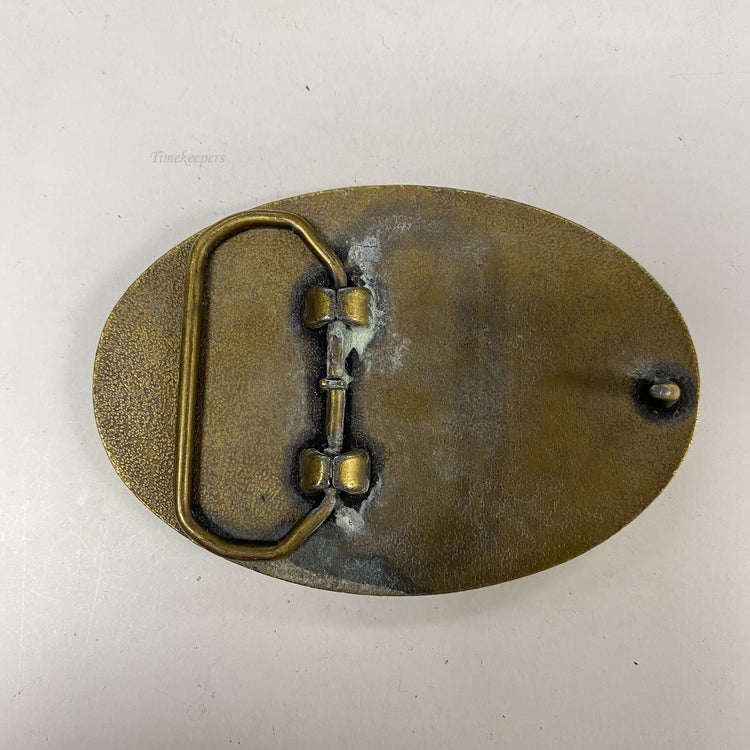 Vintage Belt Buckle. Gold tone. Carved image of a bull. Running strong for American Indian Youth