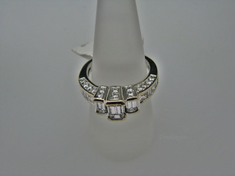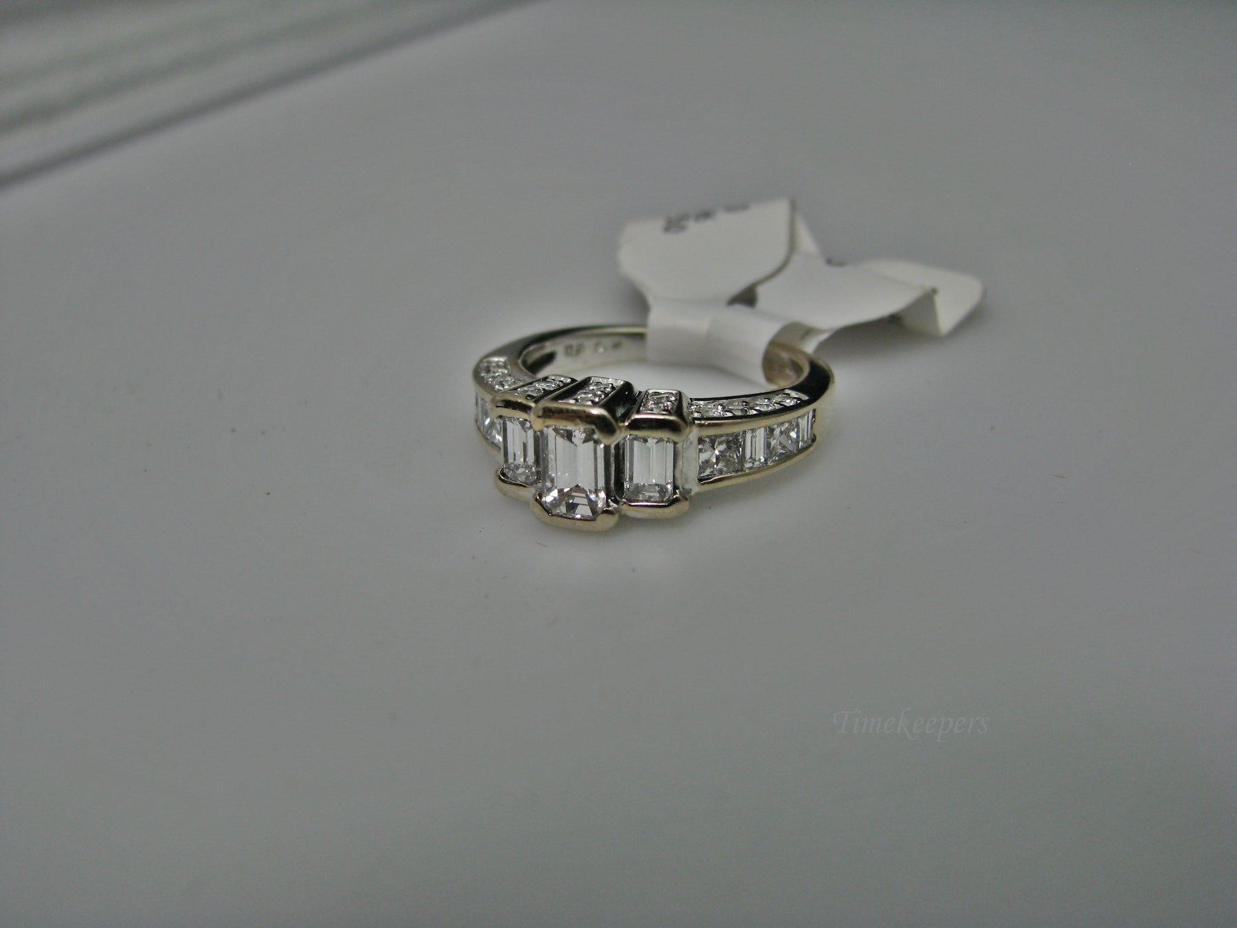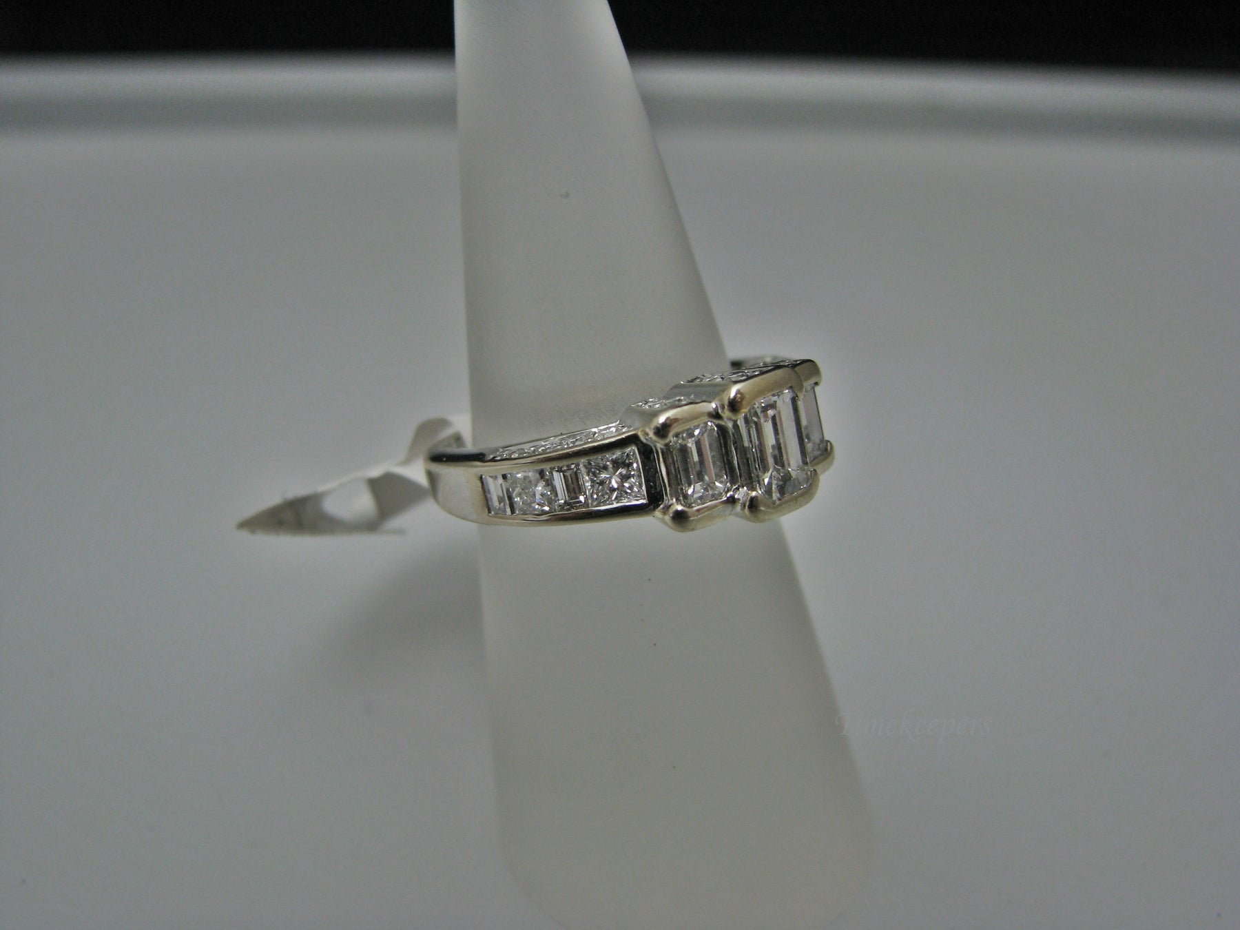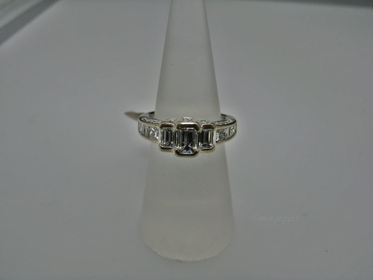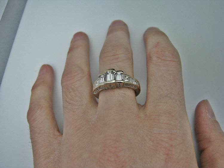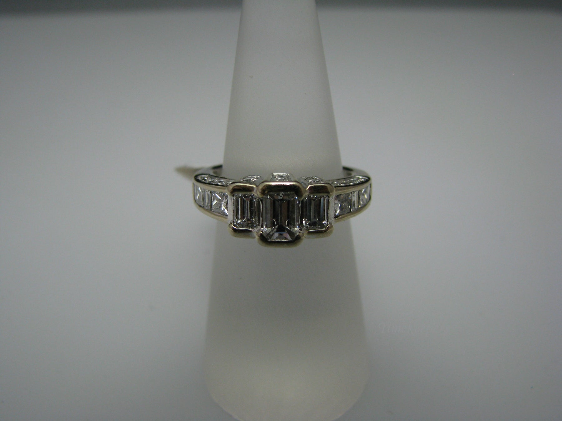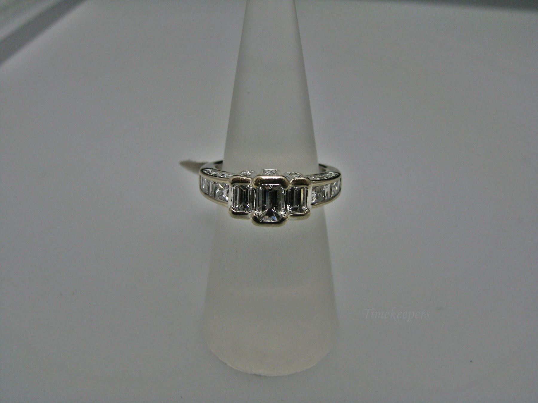 Specifics: 14k White Gold Center Diamond is 0.29ct 2 Diamonds next to center diamond is approx. 0.12ct each Total of 0.5ct in the center (3 emerald cut diamonds) Diamonds clarity is I1 (Color HI) Total of 2.0ct as a TCW Total weight of ring 6.0 grams