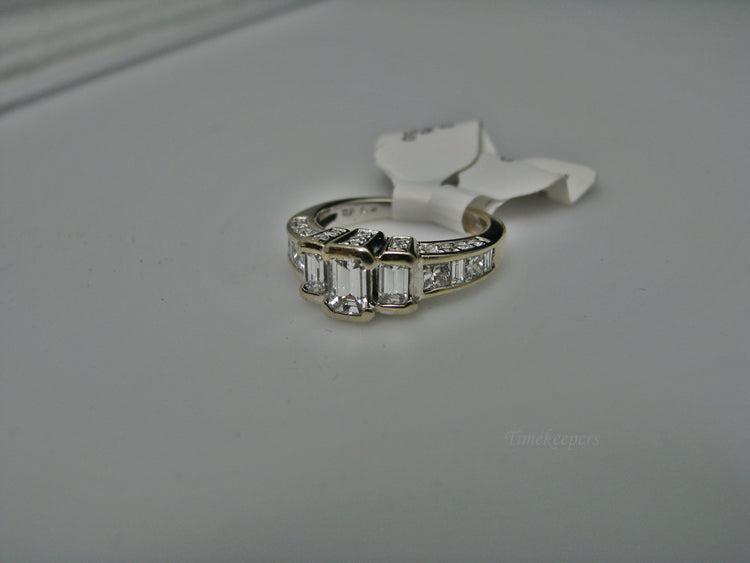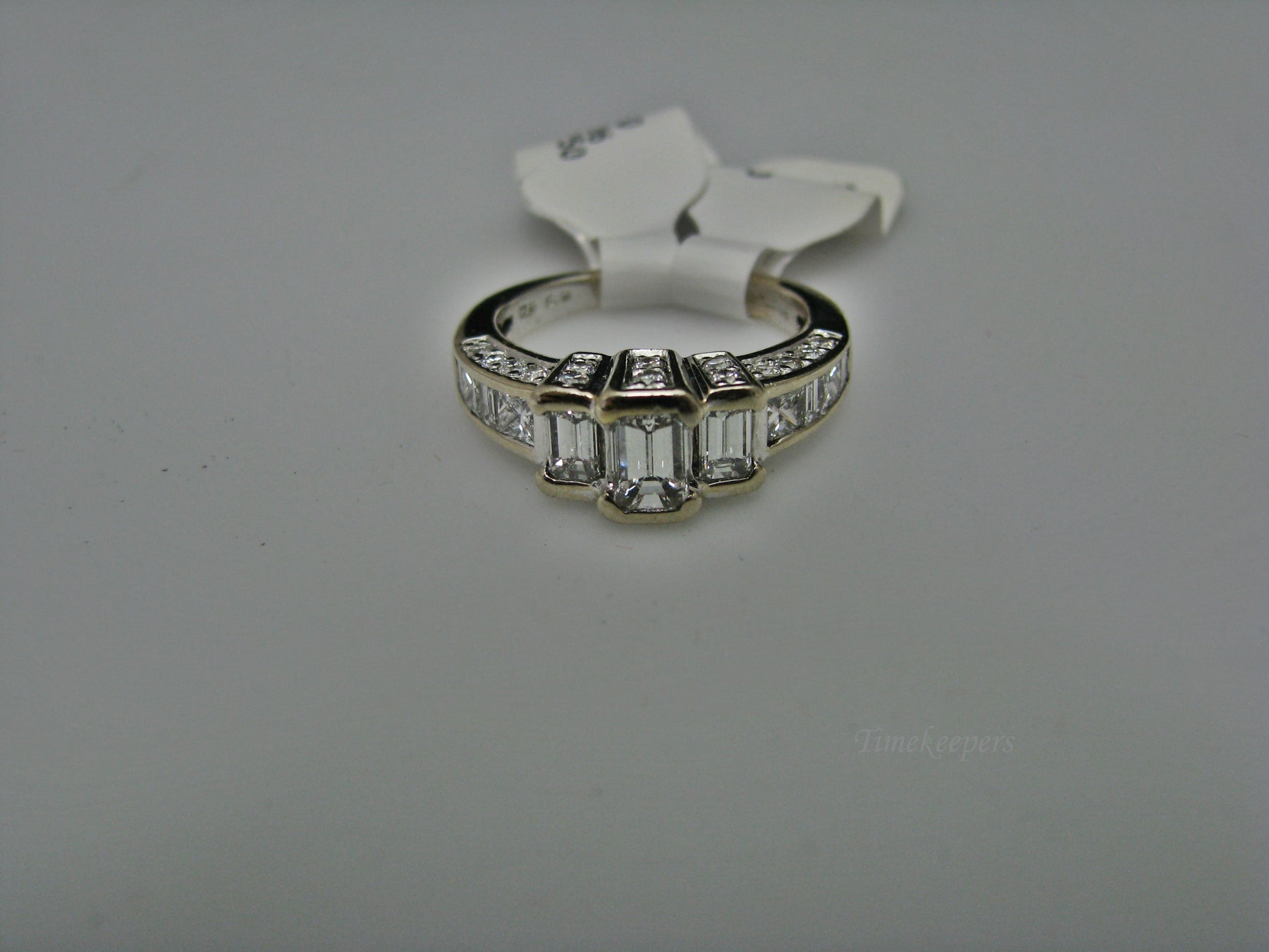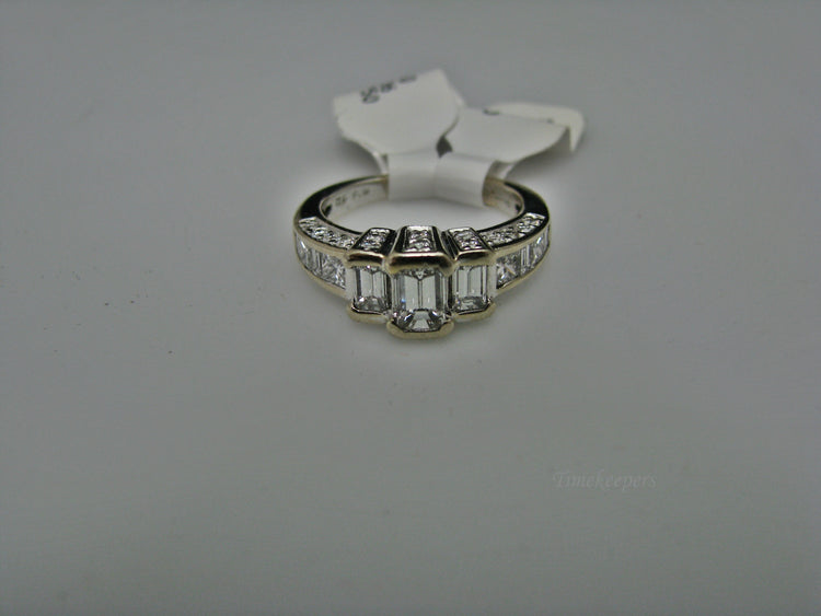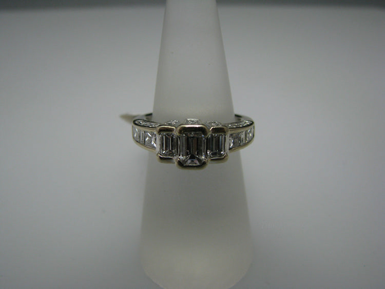 Stunning Diamond ring in size 5.5. This ring has three main stones emerald cut, multiple round cut diamonds and 4 radiant cut diamonds. Absolutely gorgeous ring for an engagement. Such a unique and gorgeous gift for a second half!