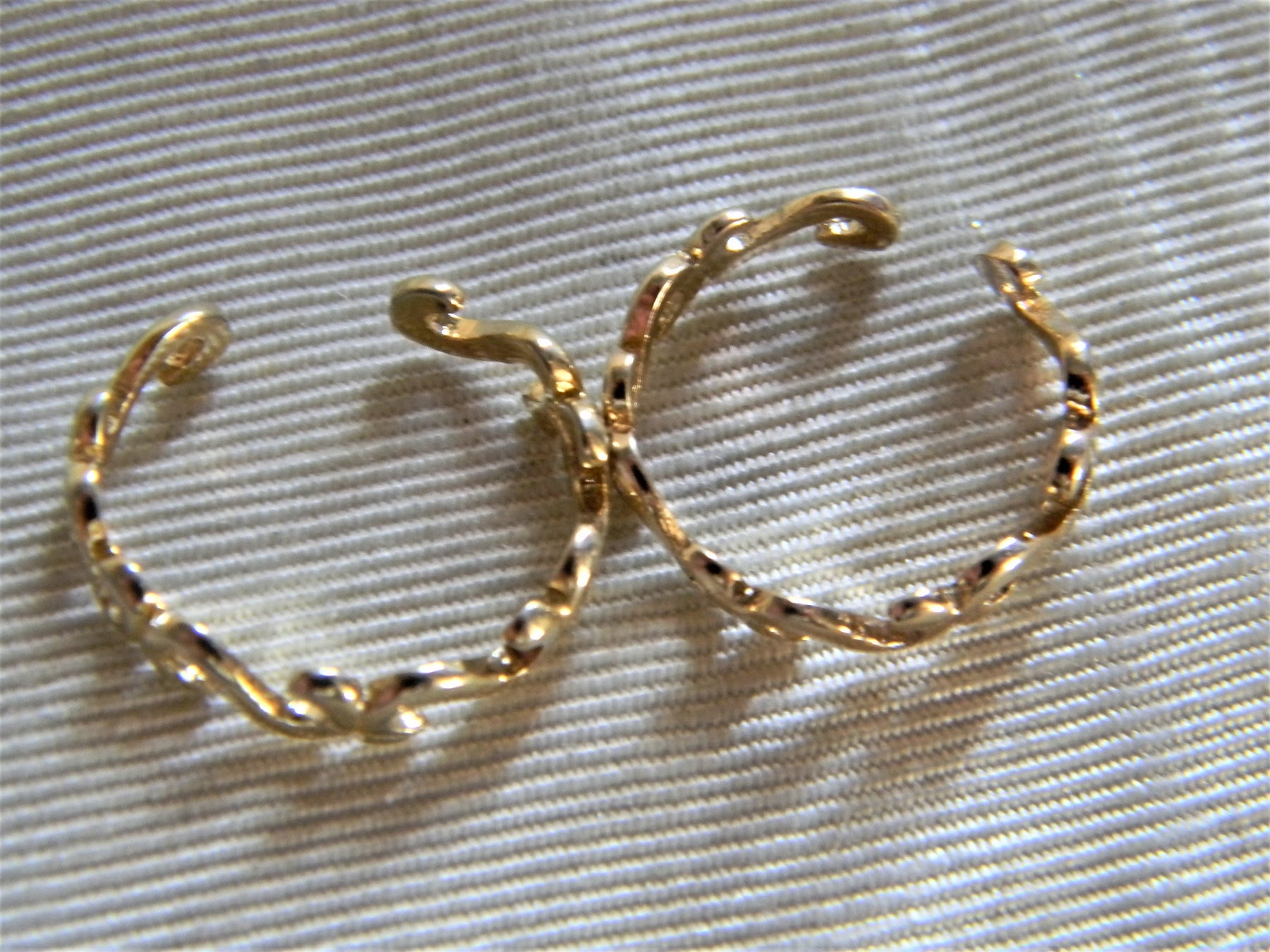 h528 Lovely Pair of Sterling Silver Toe Rings with Gold Wash (adjustable)