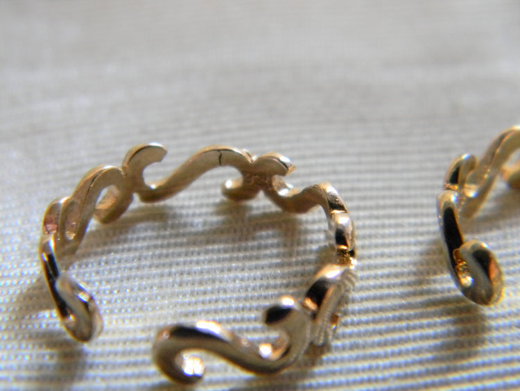 These toe rings are in sterling silver with a gold wash in a filigree design. The inside of each is marked 925.