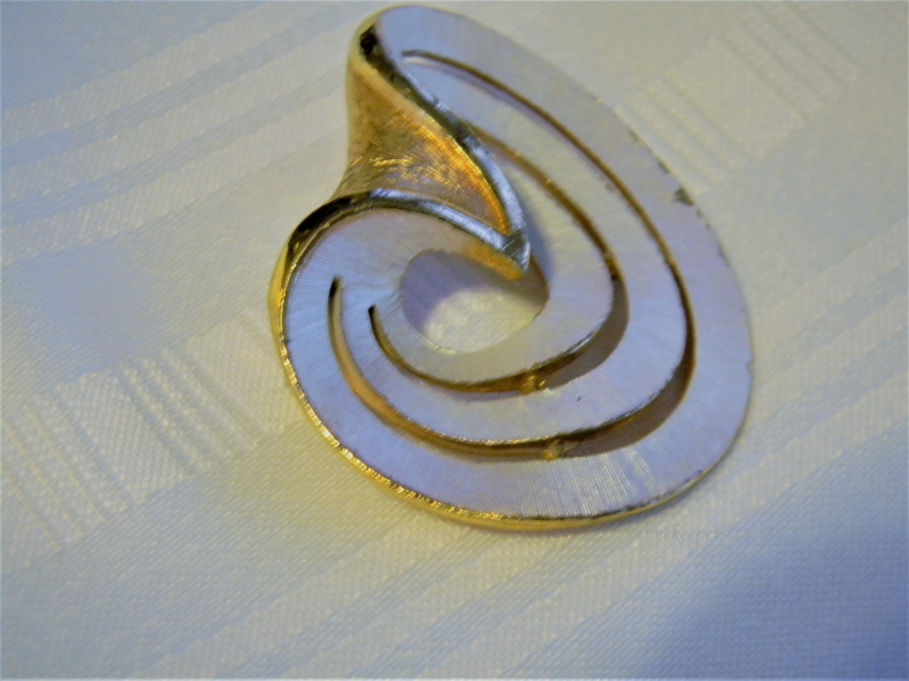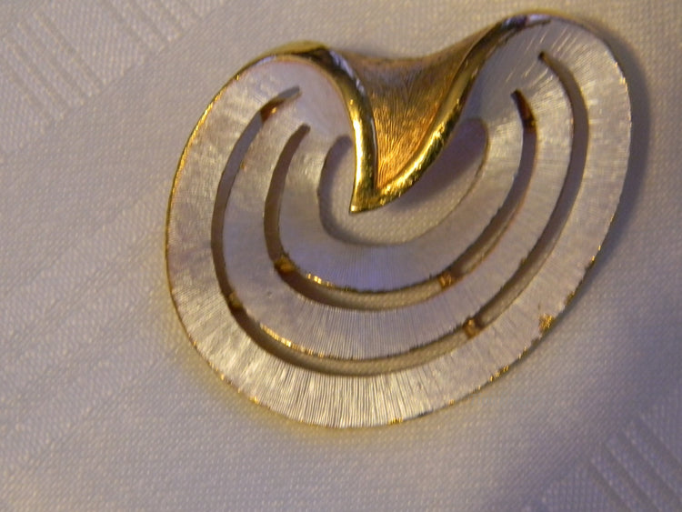 For Sale: (1) Beautiful Unique Gold Tone Modern Geometric Brooch Signed JJ PLEASE READ ENTIRE DESCRIPTION BEFORE PURCHASING Pre-owned, good condition for it's age. The white paint is chipped as seen in pictures. Please see pictures for details. Sold as is, as shown on pictures. Beautiful gold tone and white brooch. This is a unique vintage piece. Brooch is approx. 1 3/4" x 1/1/2"