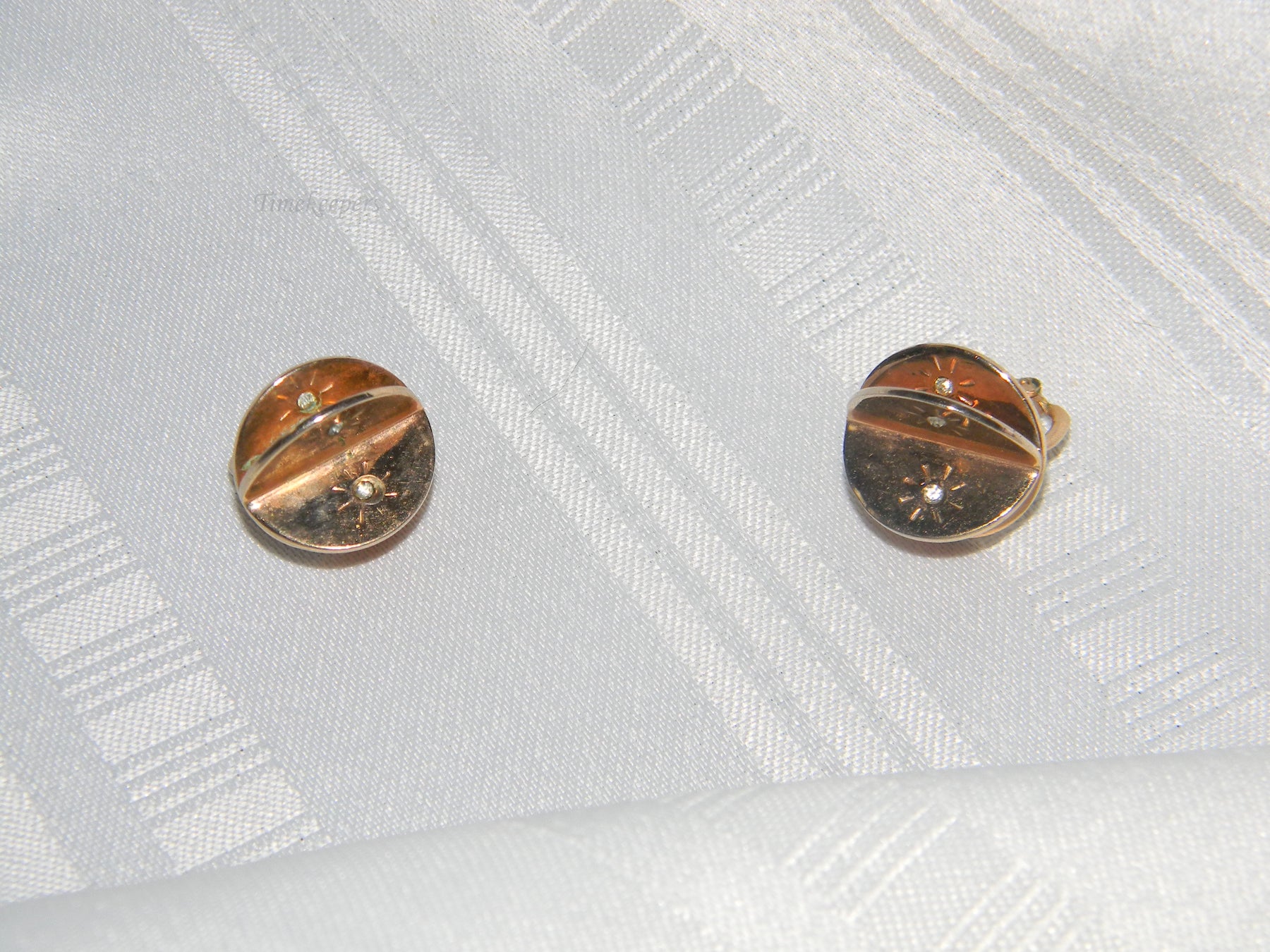 For Sale: Vintage Unique Rhinestone Castlemark Clip on Earrings in Gold Tone