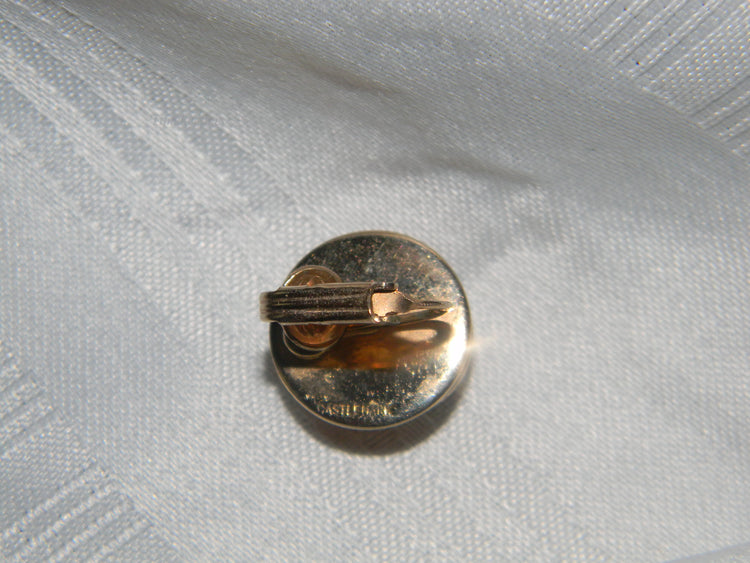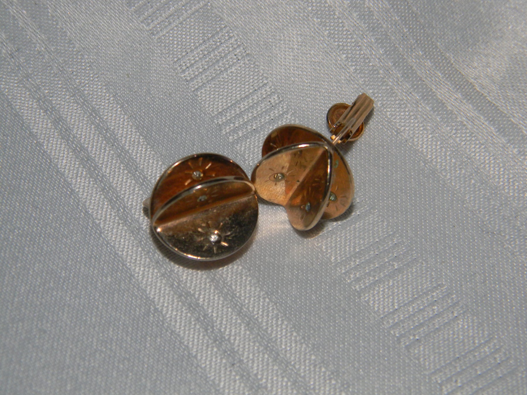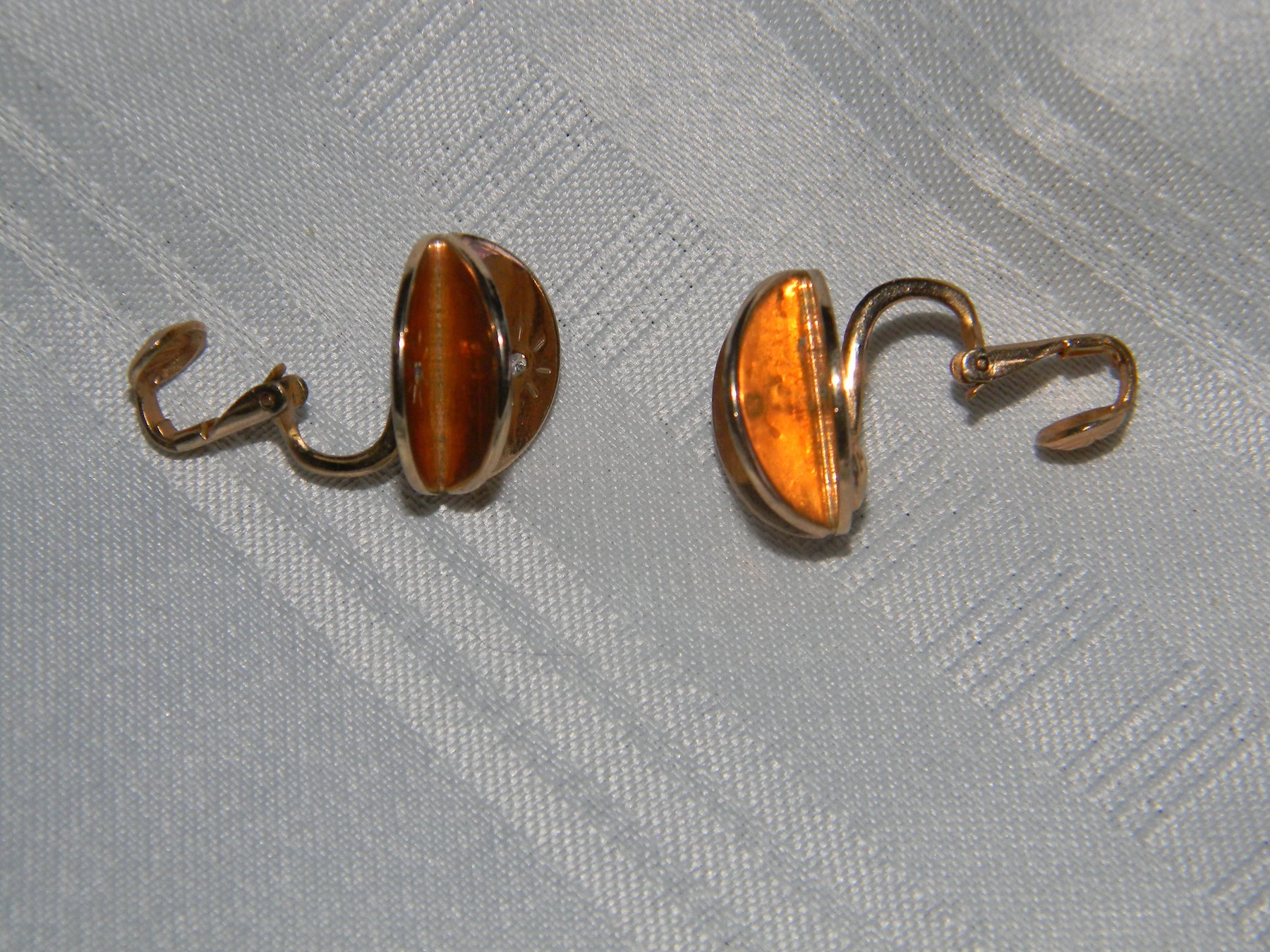 Please see pictures for more details!These unique gold tone earrings feature rhinestones on each gold tone web. The back is marked Castlemark. The clips do work as they should and are tight. Take a look at the picture to verify the unique look of these earrings.