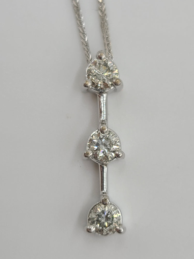 For Sale: (1) k668 Gorgeous Ladies 3 Diamond Past, Present, Future Pendant on an 16" Foxtail Style 14kt White Gold Necklace