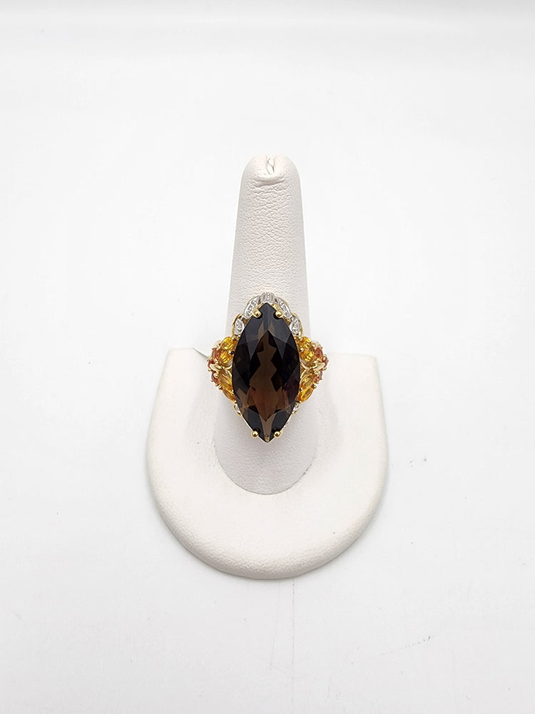 m710 Large Marquise Smoky Quartz, Citrine and Yellow Topaz Ring in 14kt Yellow Gold