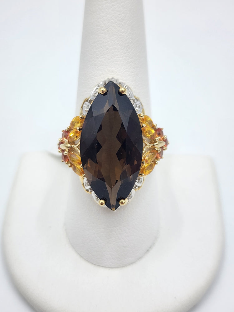For Sale: m710 Large Marquise Smoky Quartz, Citrine and Yellow Topaz Ring in 14kt Yellow Gold