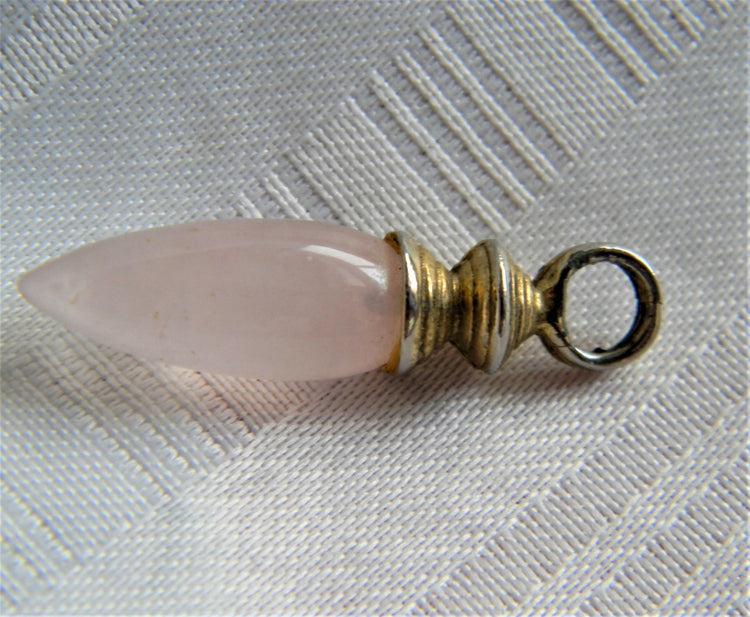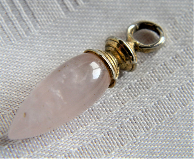 This is a unique pendant. This sphere shape pendant features a pink glass stone in gold tone.