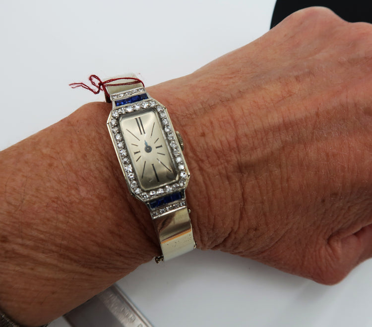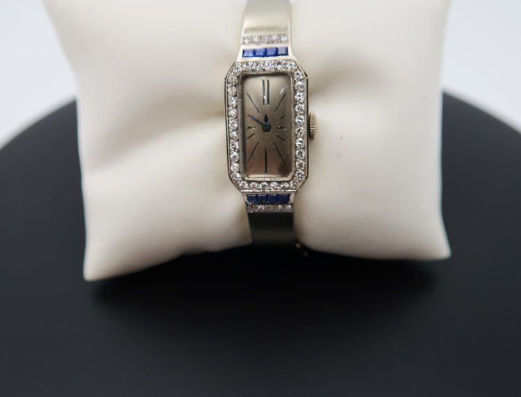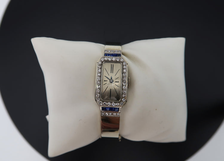 For Sale: (1) Vintage Ladies 18k White Gold Diamond/ Sapphire Bangle watch