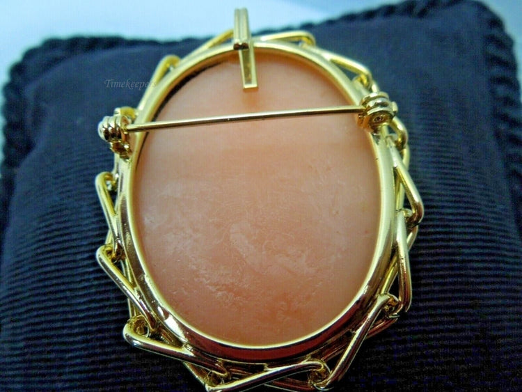 Vintage Estate Cameo Brooch Pin Gold Tone Pink White Women Looks Right.