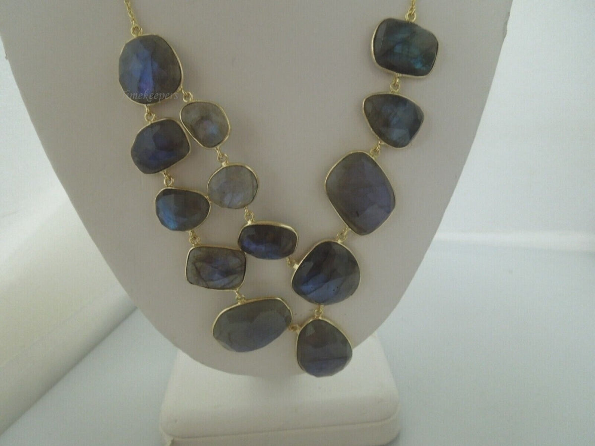 For sale: (1) r410 Gorgeous Gold Plated Sterling Silver Natural Labradorite Necklace Made In India 20"