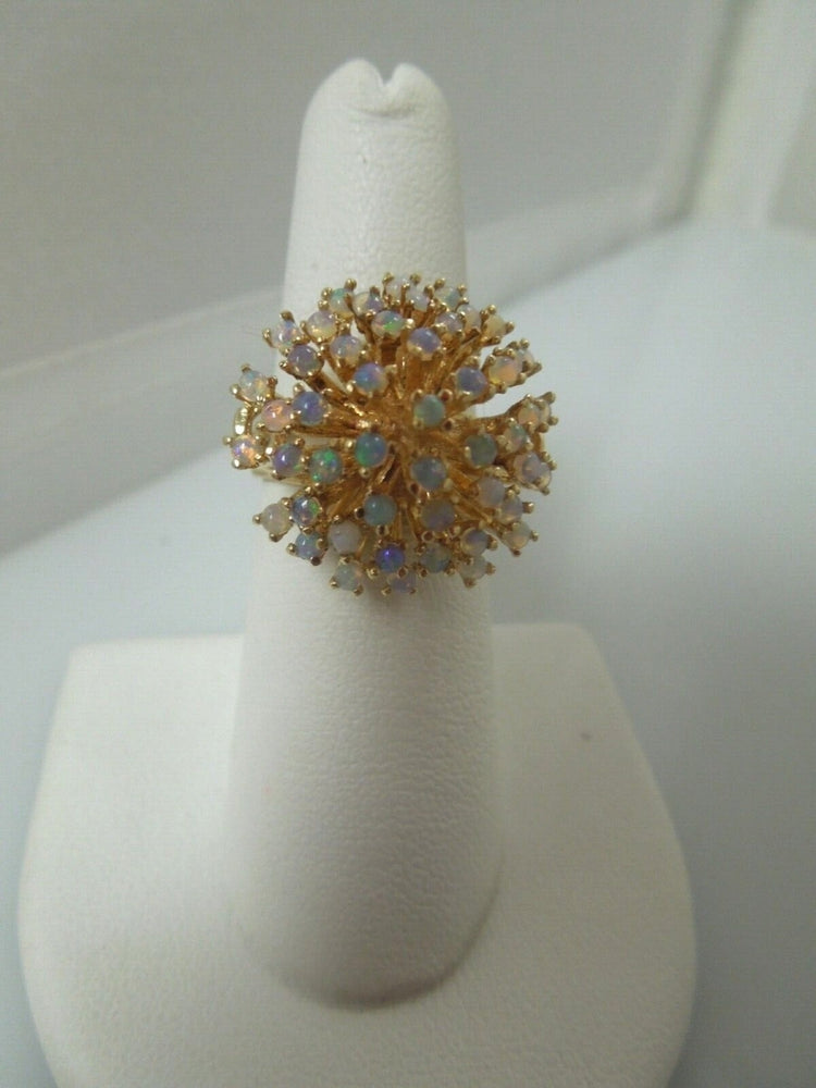 This beautiful ring features a over 1/2" high domed top that resembles a sphere entirely adorned with opal cabochons