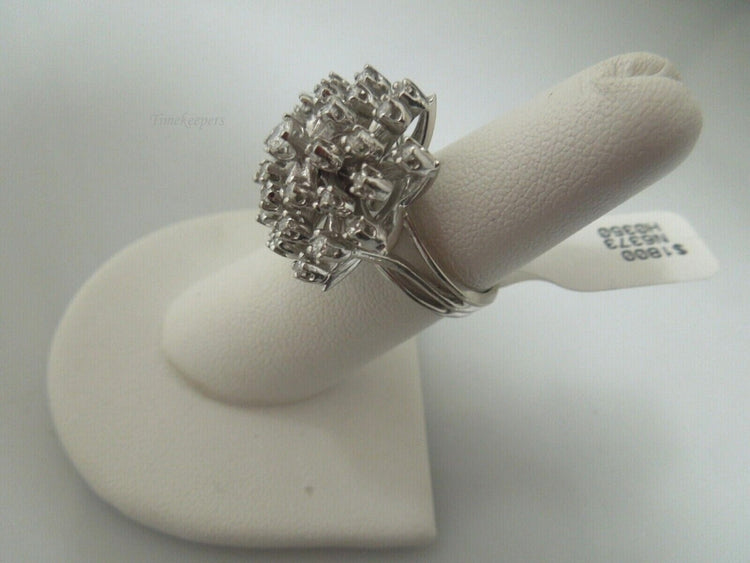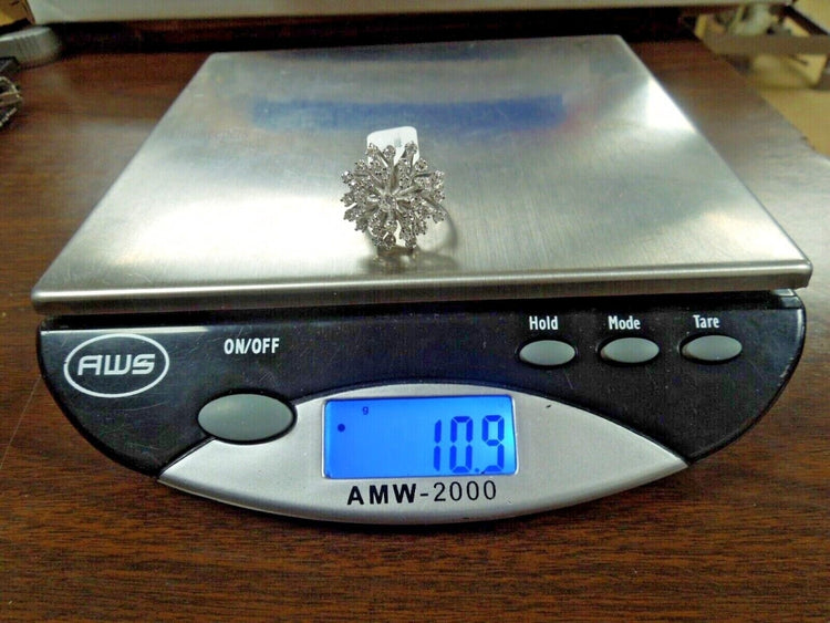 r569 14kt White Gold D-.45 cts Starburst Ring Size 6(USA)Signed 10.9g