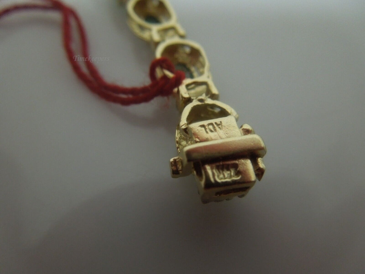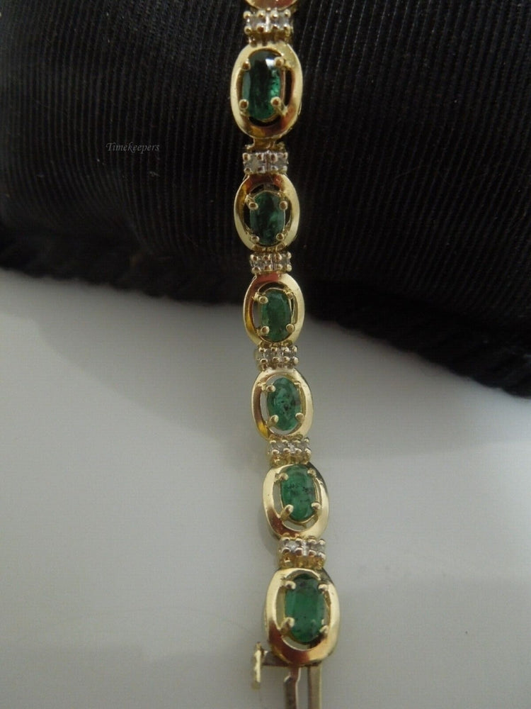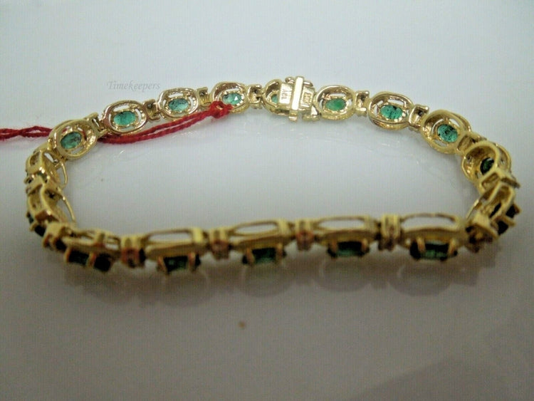 r878 Beautiful 14kt Yellow Gold Emerald Diamond .17 cts Tennis Bracelet Signed 6.5"