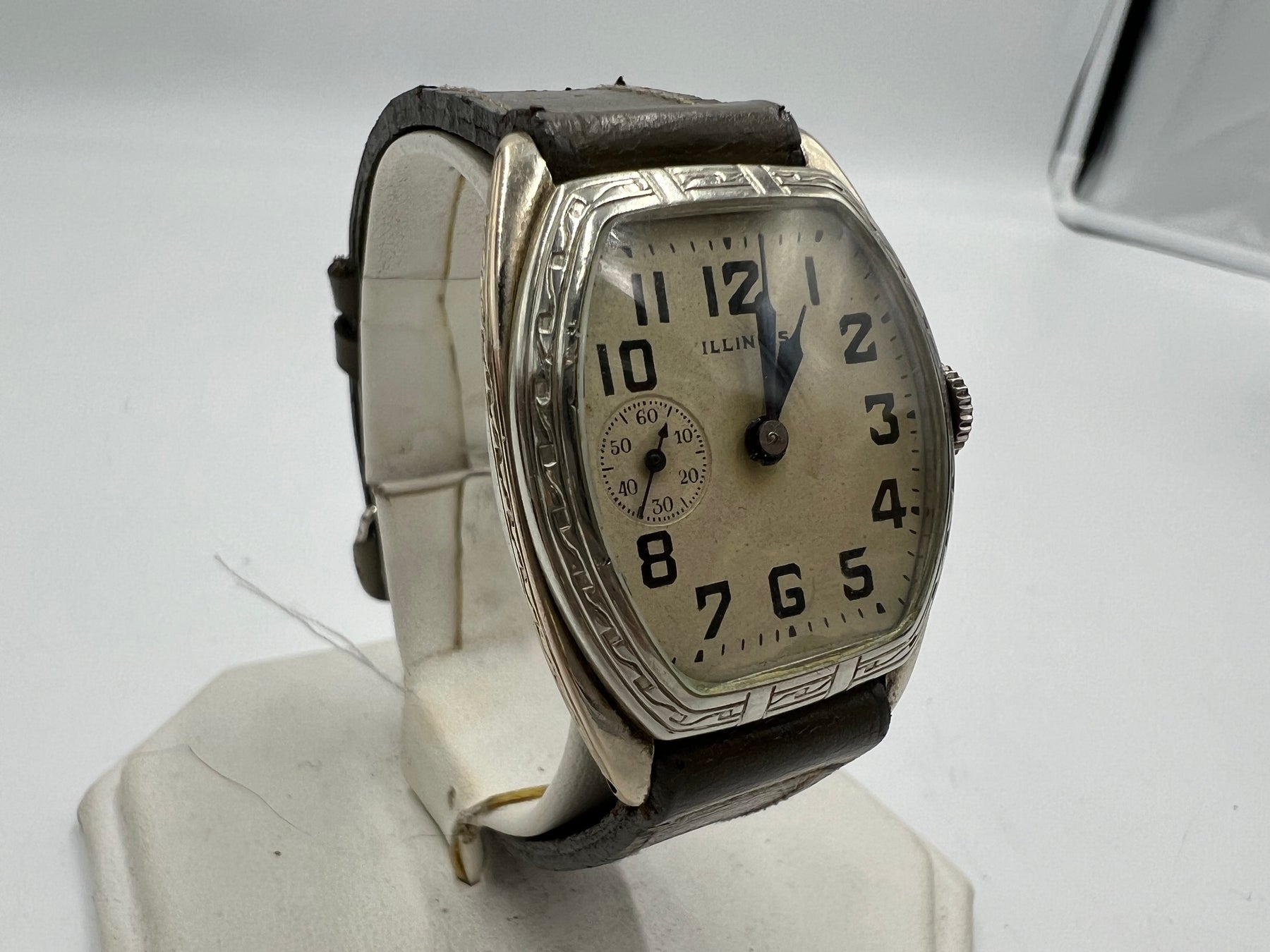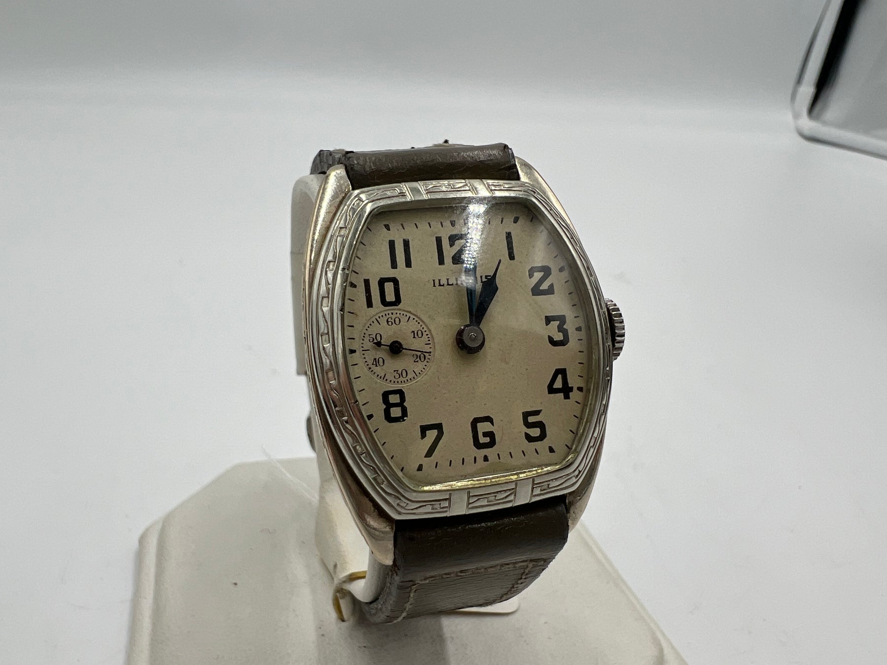 This Illinois "Beau Brummel" wristwatch is a classic piece that exudes elegance and style. Crafted with a 14k gold filled case and a gray leather band, it is a great addition to any formal outfit. The white dial adds a touch of sophistication, while the small second feature provides accuracy and precision. Whether you're a collector or simply a lover of fine timepieces, this Illinois wristwatch is sure to impress.