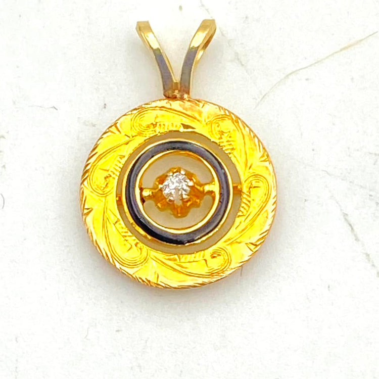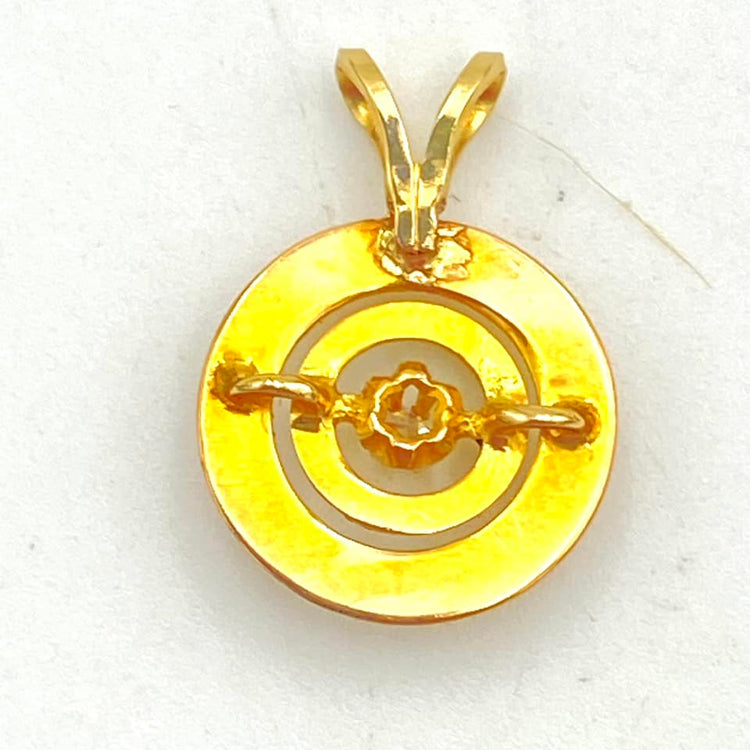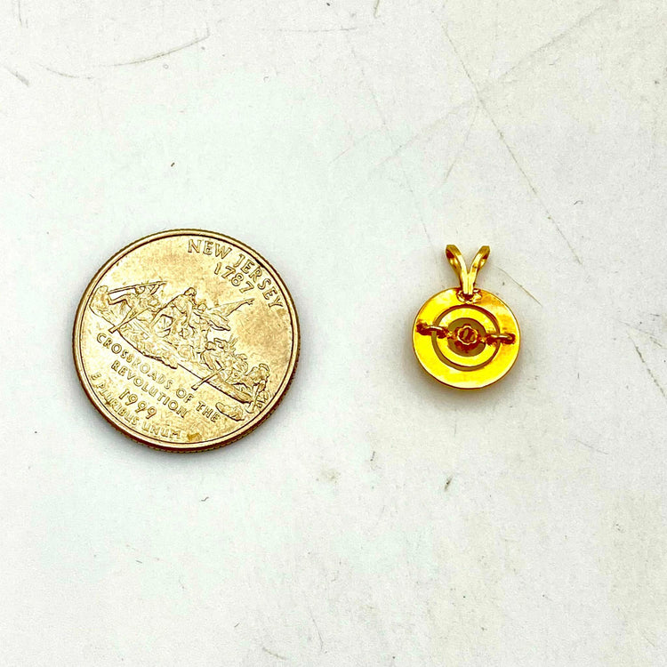 * 14K Yellow Gold Charm Pendant. Tested. 11mm in diameter x 1mm thick. White stone in center 1mm in diameter.