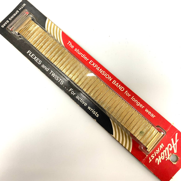 u781 Vintage Gold Tone Stainless Steel 1-Piece Stretch Watch Band Bracelet