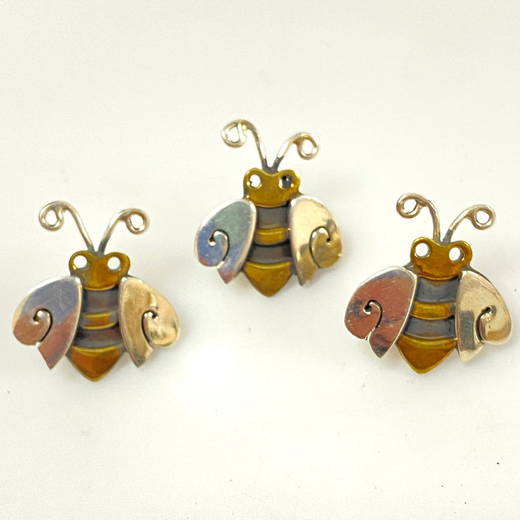 u931 Vintage Far Fetche Gold and Silver Tone Bee Flying Insect Brooch Pin