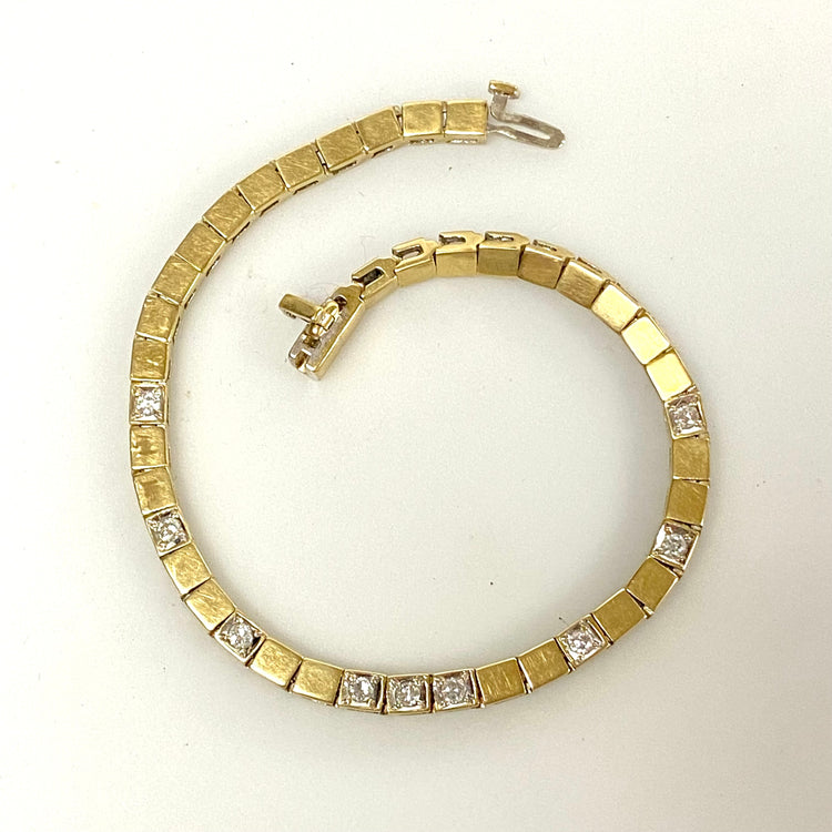 Vintage 14K Yellow Gold bracelet.  0.36cts White/Colorless Diamonds (9 count)