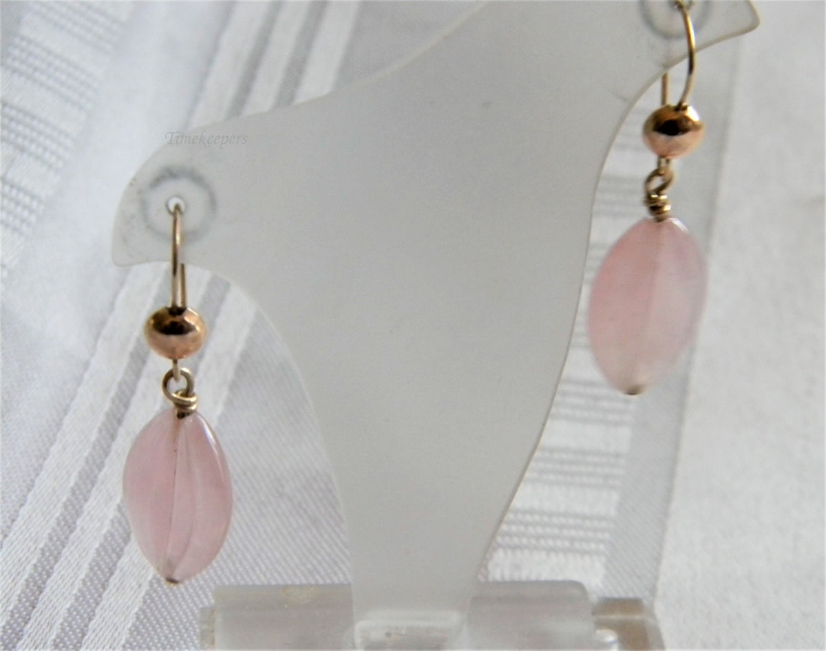 h698 Beautiful Gold Tone Dangle Earrings with Pink Ridged Stones