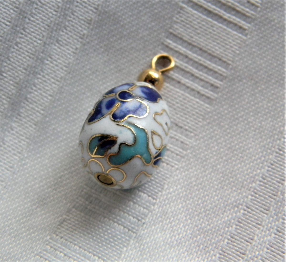 p065 Stunning Vintage Cloisonne Pendant in White and blue with Gold Accents