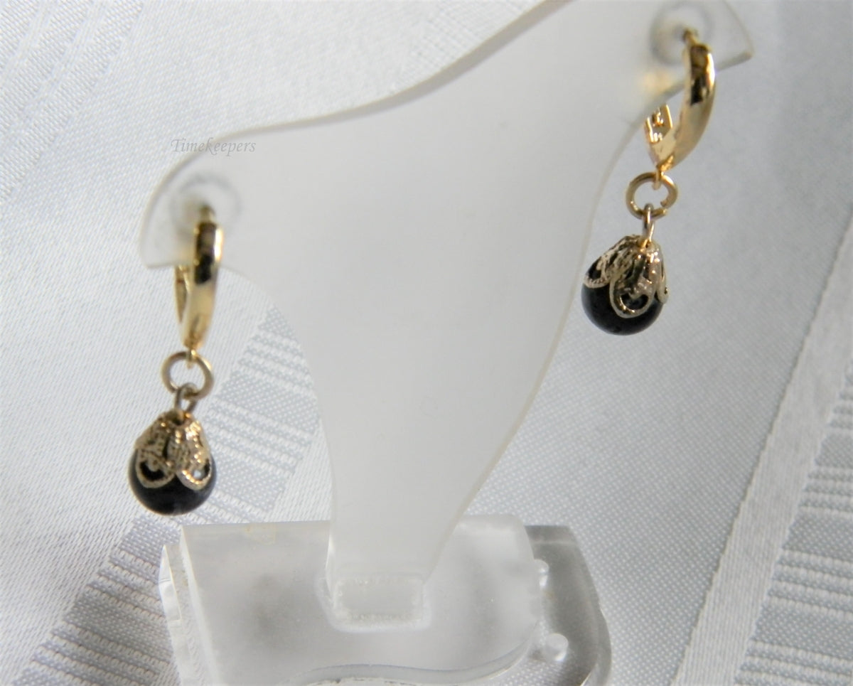 h979 Beautiful Gold Tone Dangle Earrings with Black Round Stones