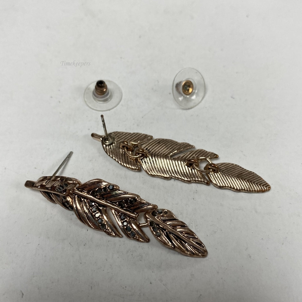m072 Vintage Rose Gold Tone Leaf Marcasite Drop Earrings