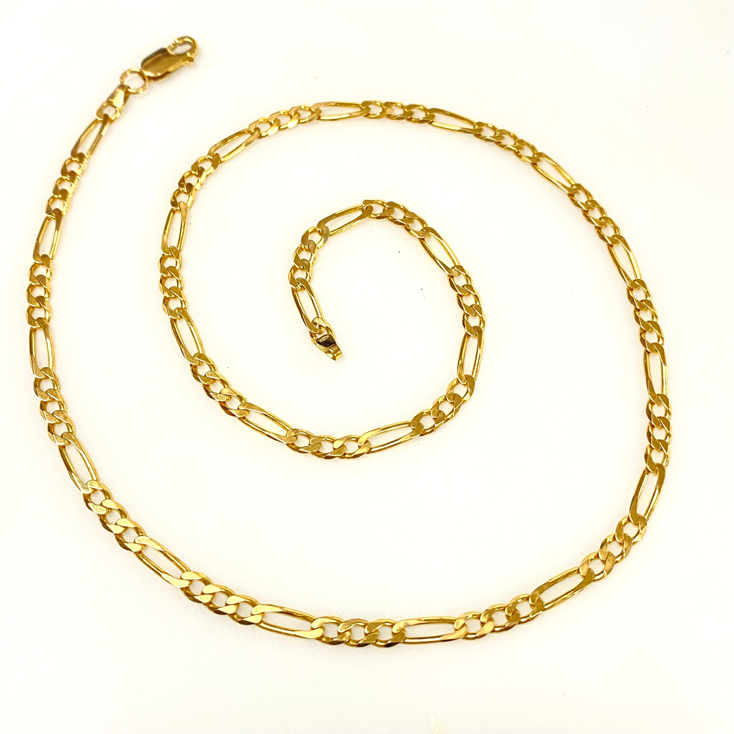 u972 Vintage 14K Yellow Gold Figaro Style Chain Necklace 18" Long