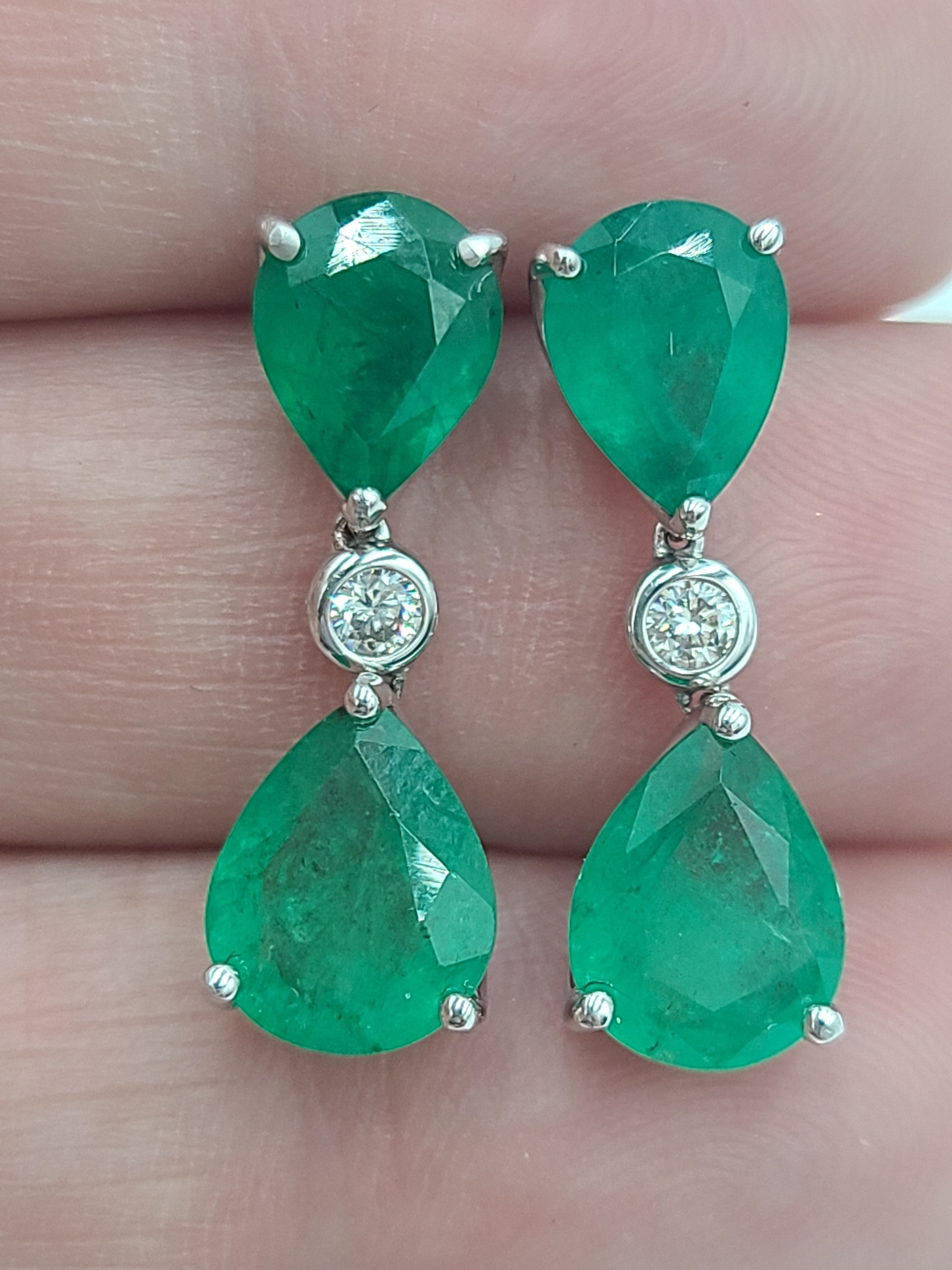 k767 Gorgeous 14kt White Gold 7.5cts Emerald & Diamond Dangle Earrings