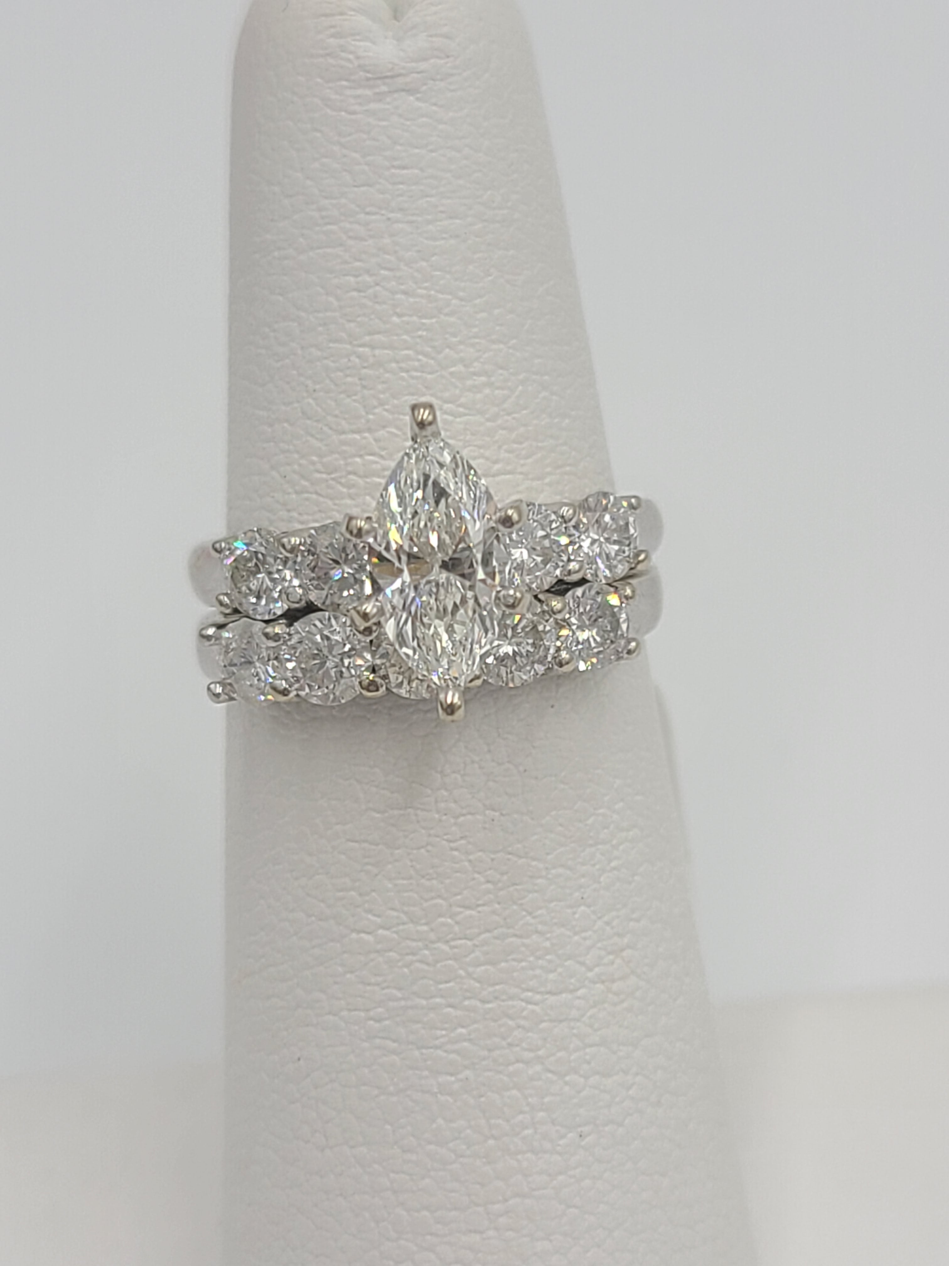 k745 Gorgeous 14kt White Gold Marquise Diamond Wedding Set