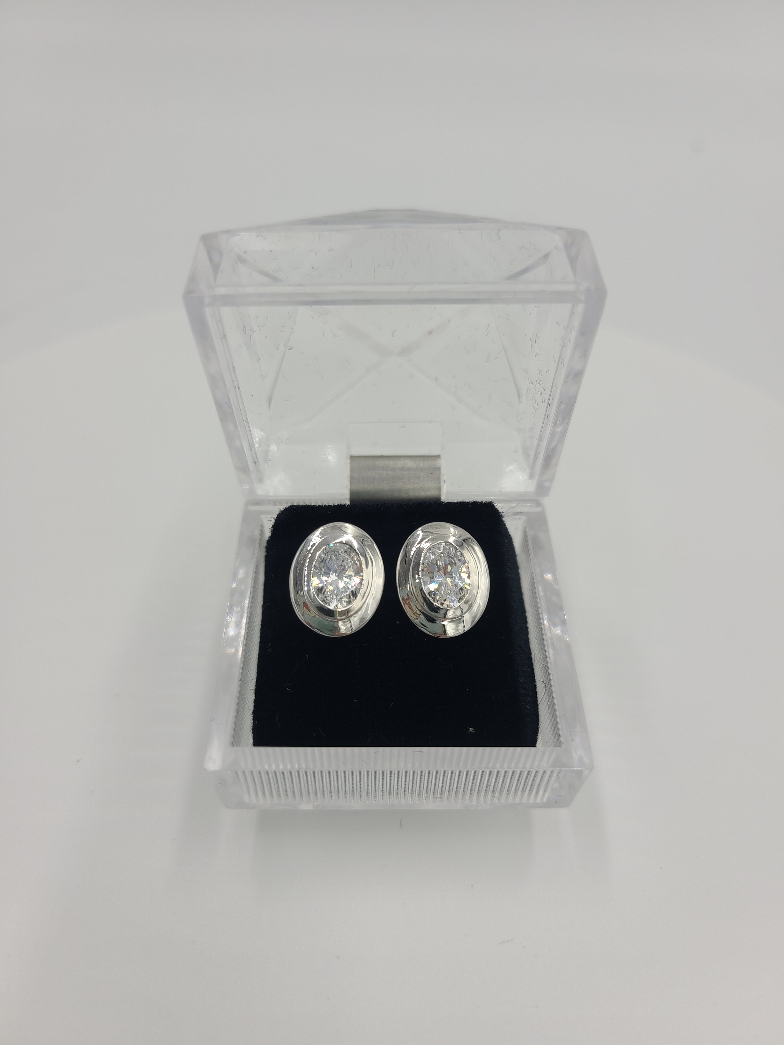 k644 Beautiful Ladies 14kt White Gold Oval CZ Stud Earrings
