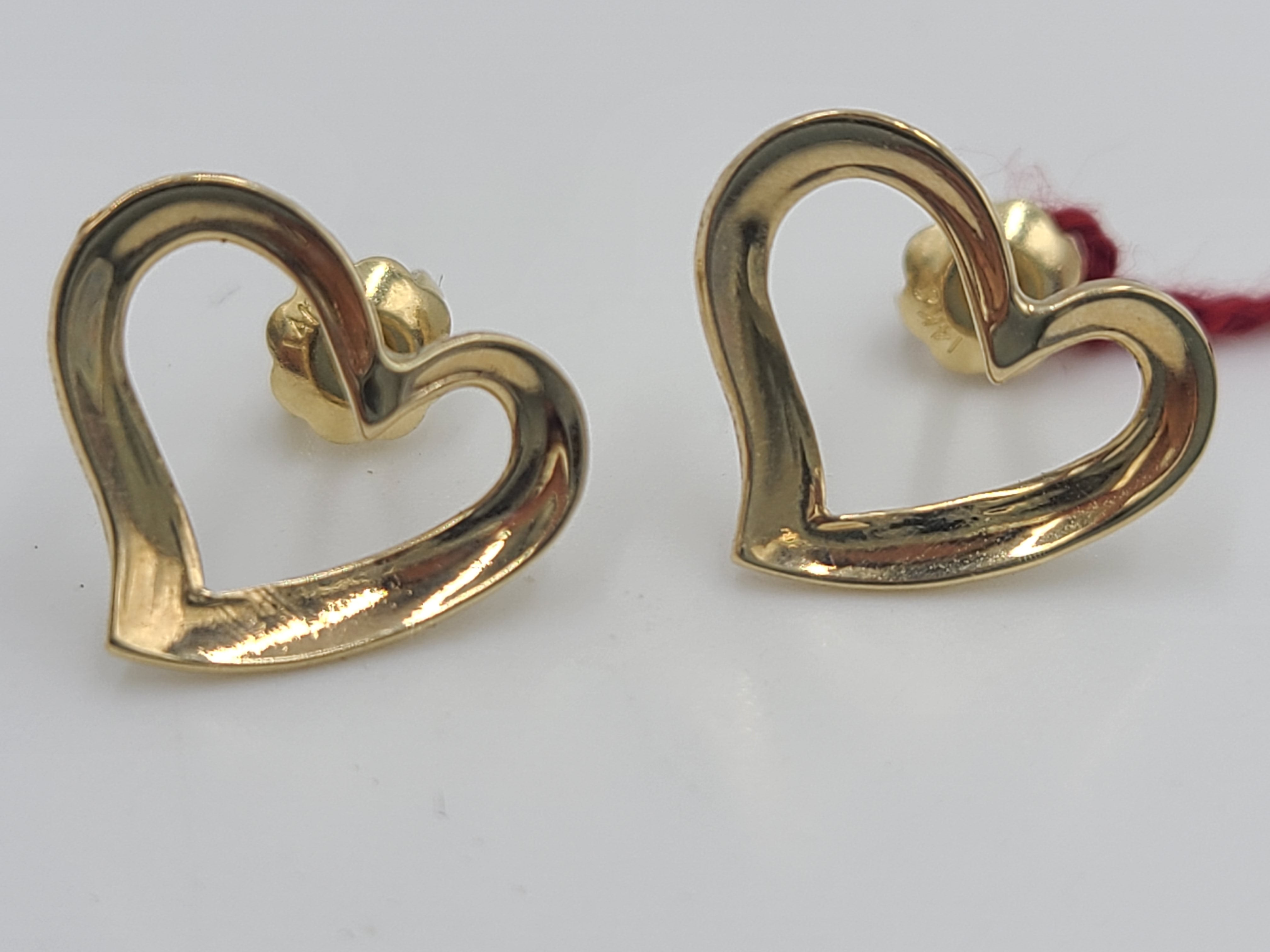 k665 Cute 14kt Yellow Gold Heart Shaped Earring Studs for Women & Girls