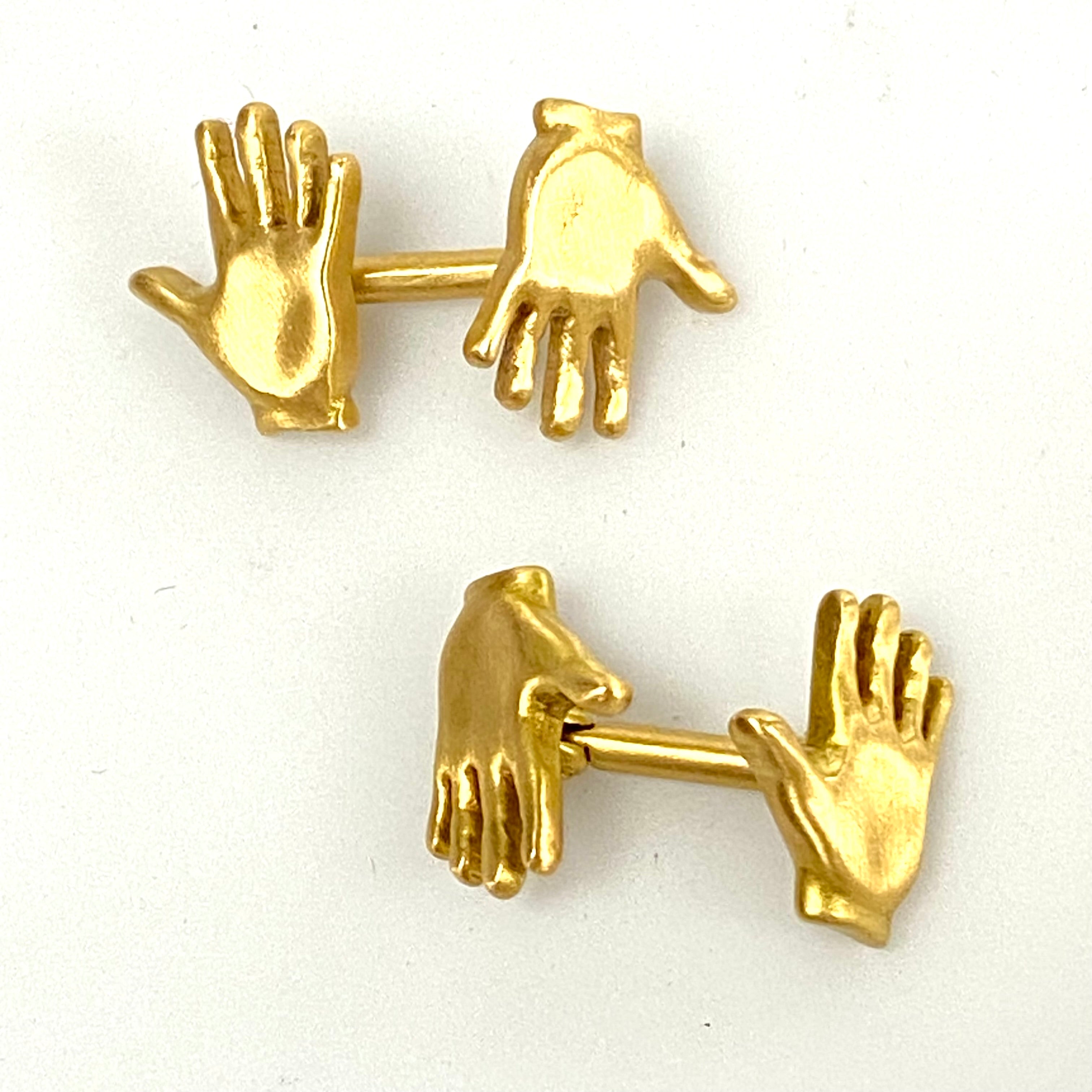 v032 Vintage 18k Yellow Solid Gold Hands Men's Cufflinks